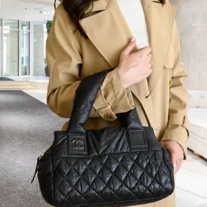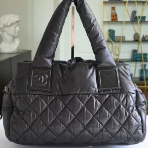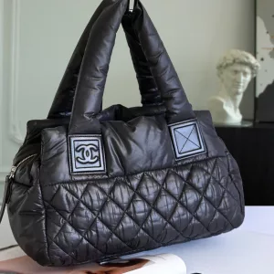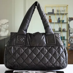 CHANEL Authentic Nylon Coco Cocoon Black Quilted Bag Handbag Italy