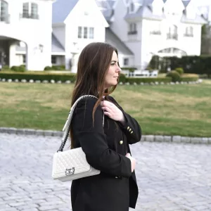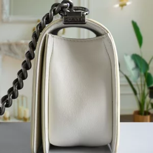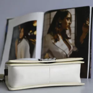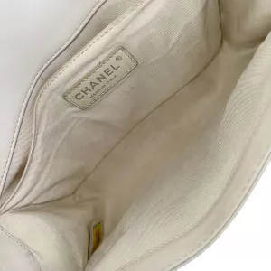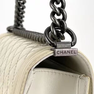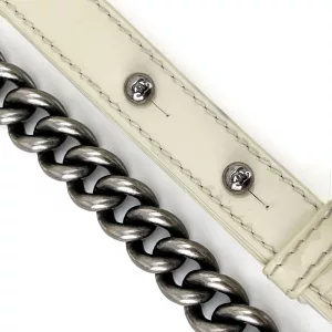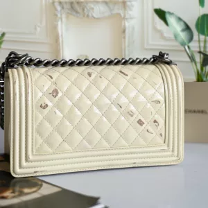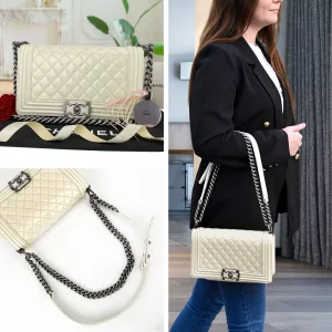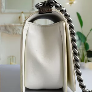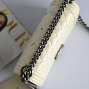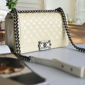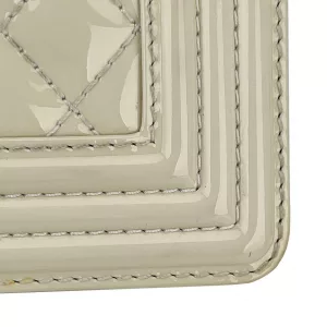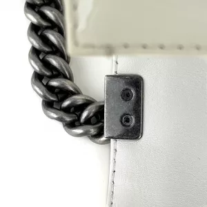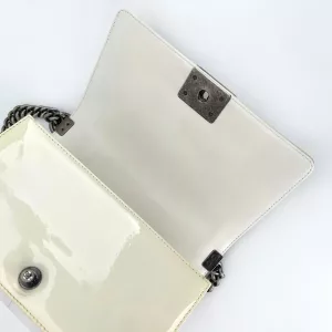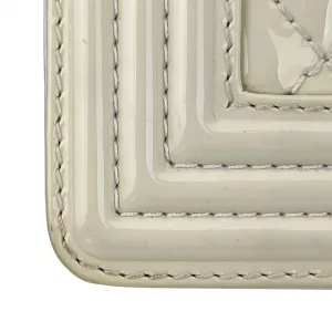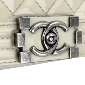 CHANEL Authentic Old Boy Patent White Quilted Crossbody Silver HWR Clutch Bag