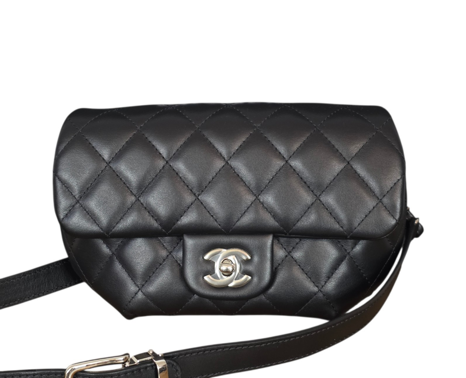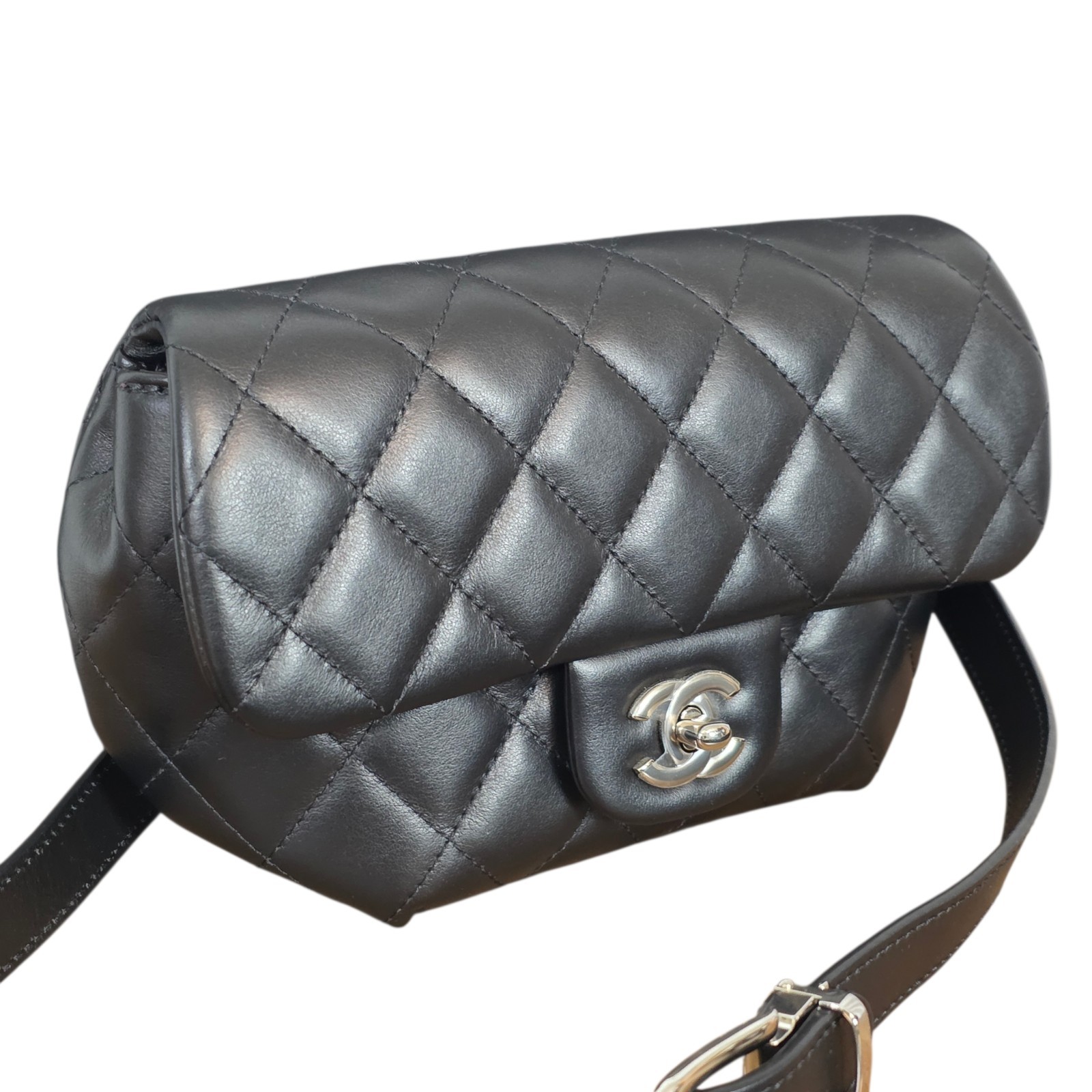 Return To ShopThis CHANEL Uniform Waist Pouch Belt Bag is an ultra‑rare piece created exclusively for Chanel staff — never sold to the public and exceptionally hard to find. Crafted in black quilted leather with silver‑tone hardware, this versatile pouch can be worn as a waist bag or styled as a chic shoulder bag using the chain‑and‑leather strap. The hologram sticker is fully intact, and the hardware still retains its protective sticker, indicating possible unused condition. A true collector’s piece with that unmistakable Chanel CC turn lock and recognizable quilted leather.
