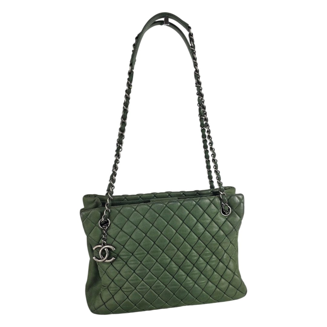 Chanel Green Leather Bubble Tote