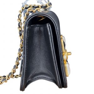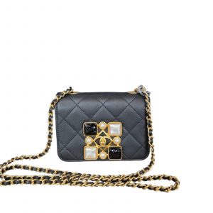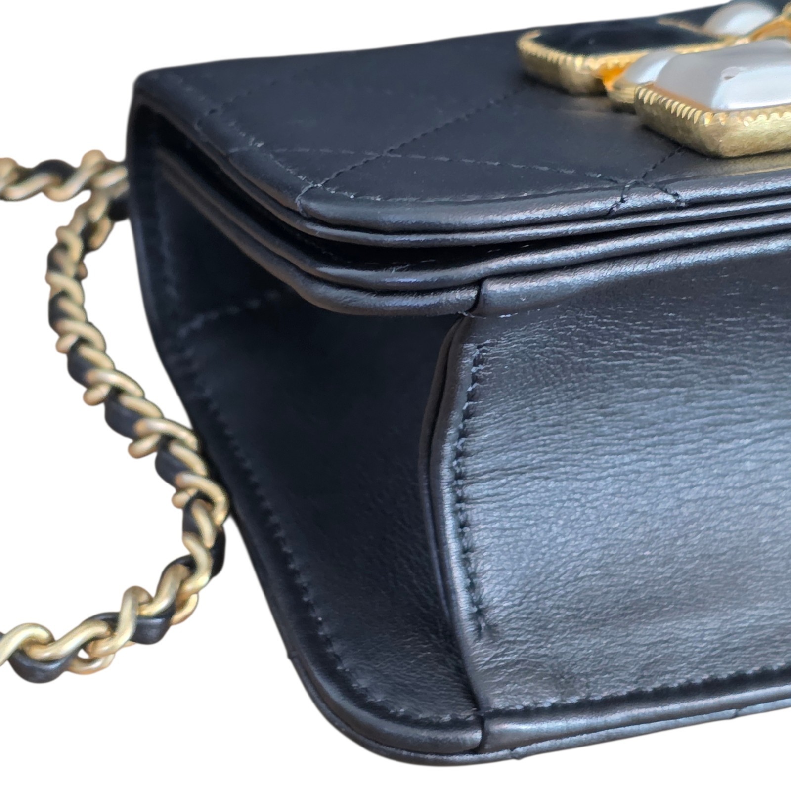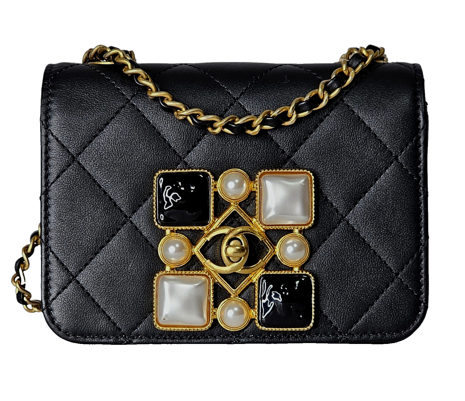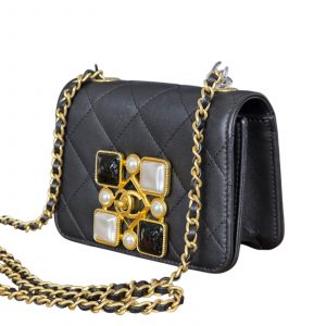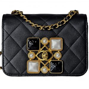 This mini flap wears like a piece of fine jewelry — the onyx and pearl embellishment paired with the starring CC motif creates a luminous focal point that elevates any outfit.