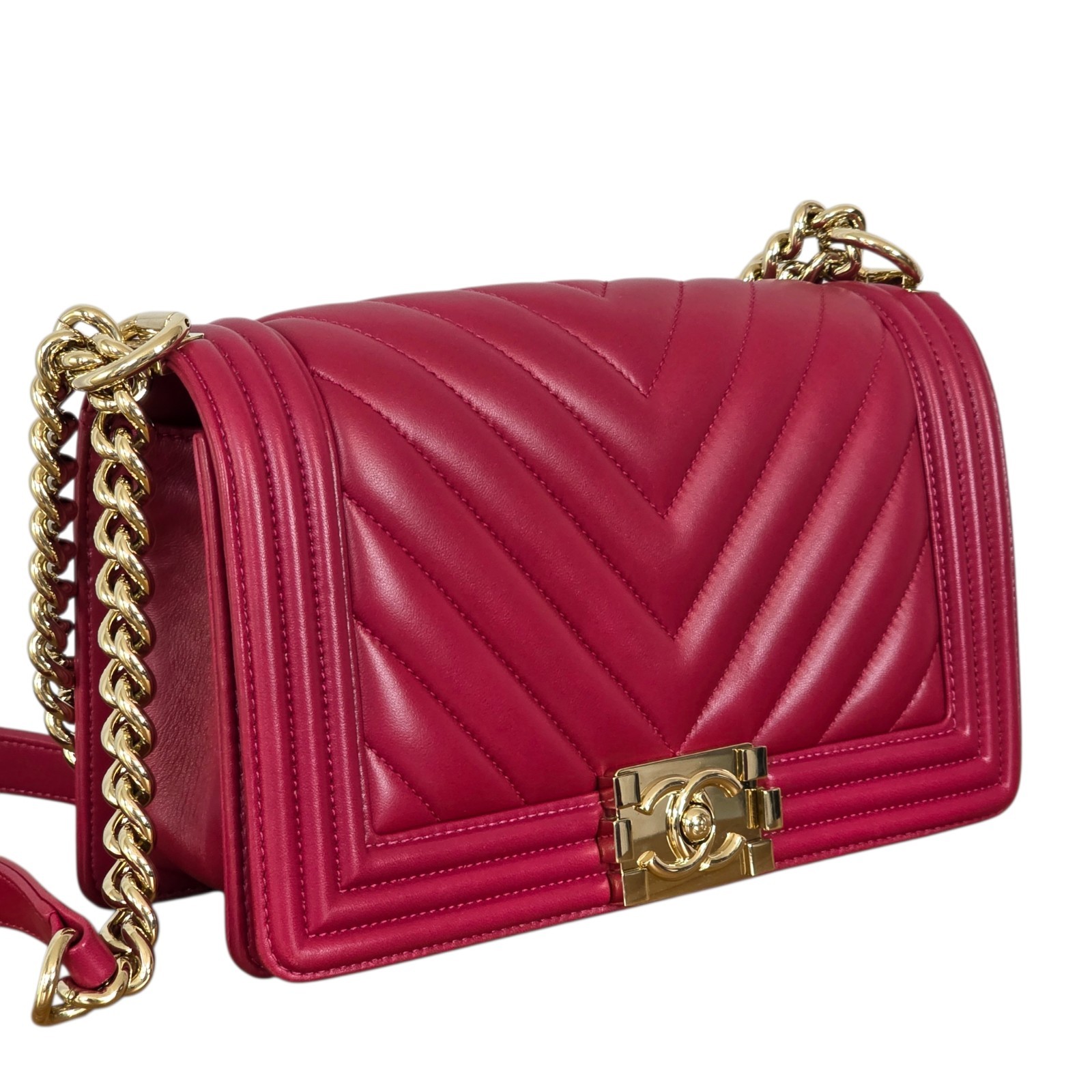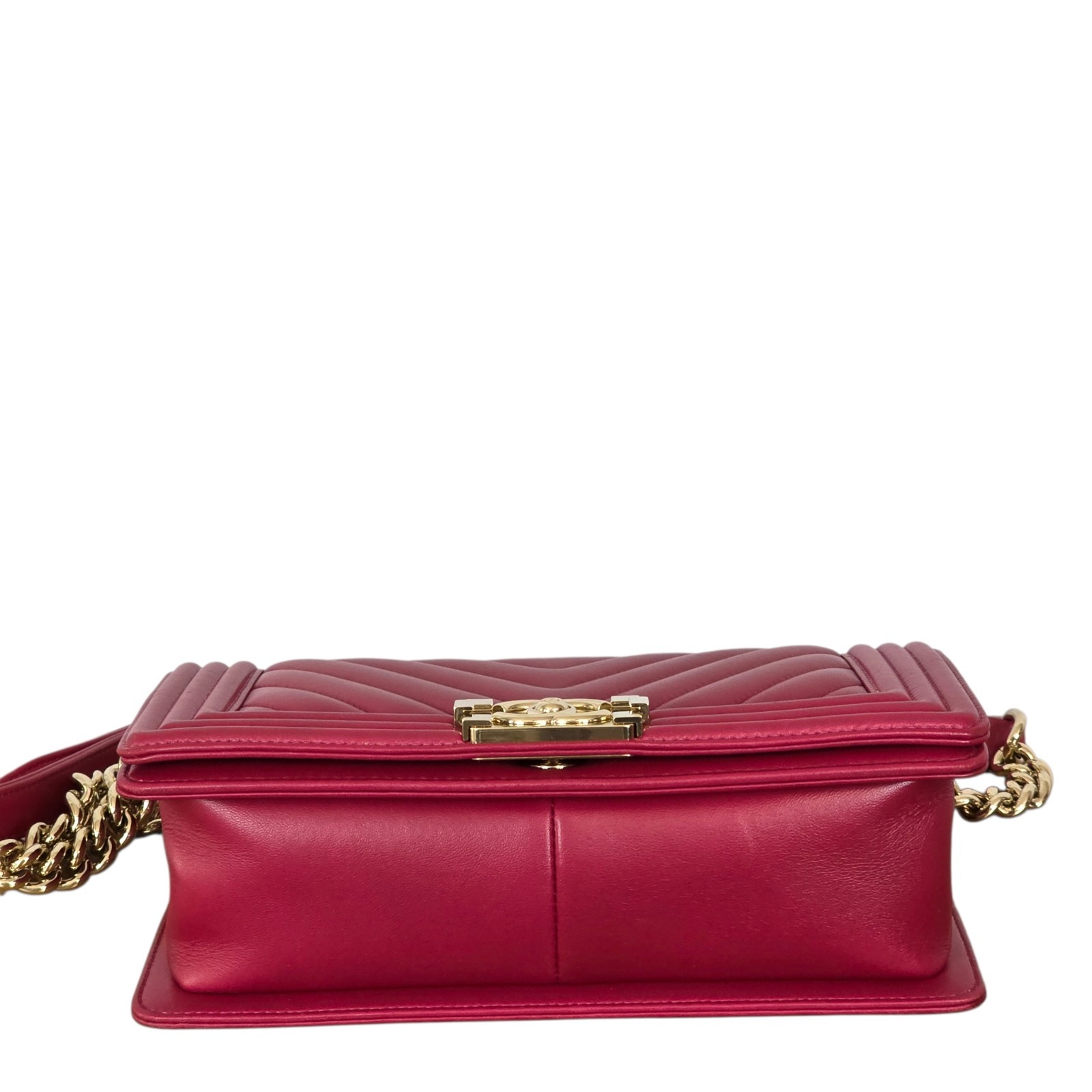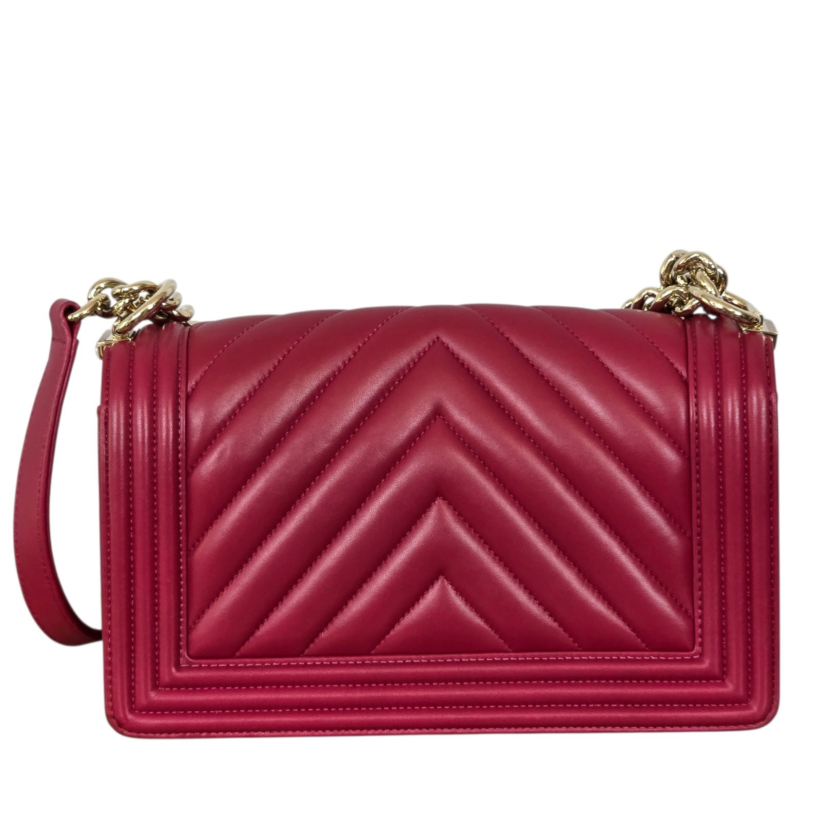 This Merlot Boy Bag is a statement of refined glamour. The deep wine lambskin paired with champagne gold hardware creates a warm, luminous contrast that elevates any look. It’s the kind of bag that transforms an outfit effortlessly: