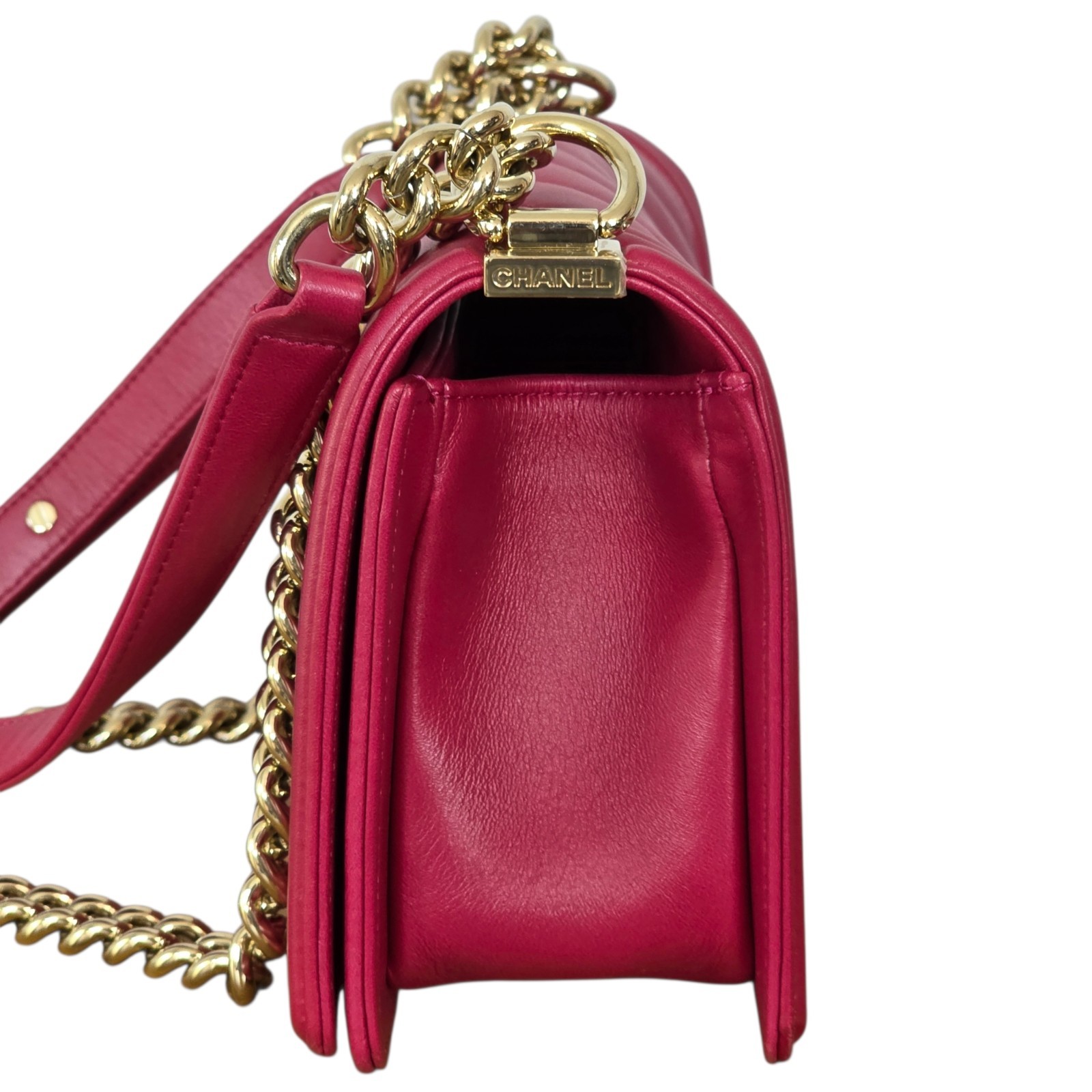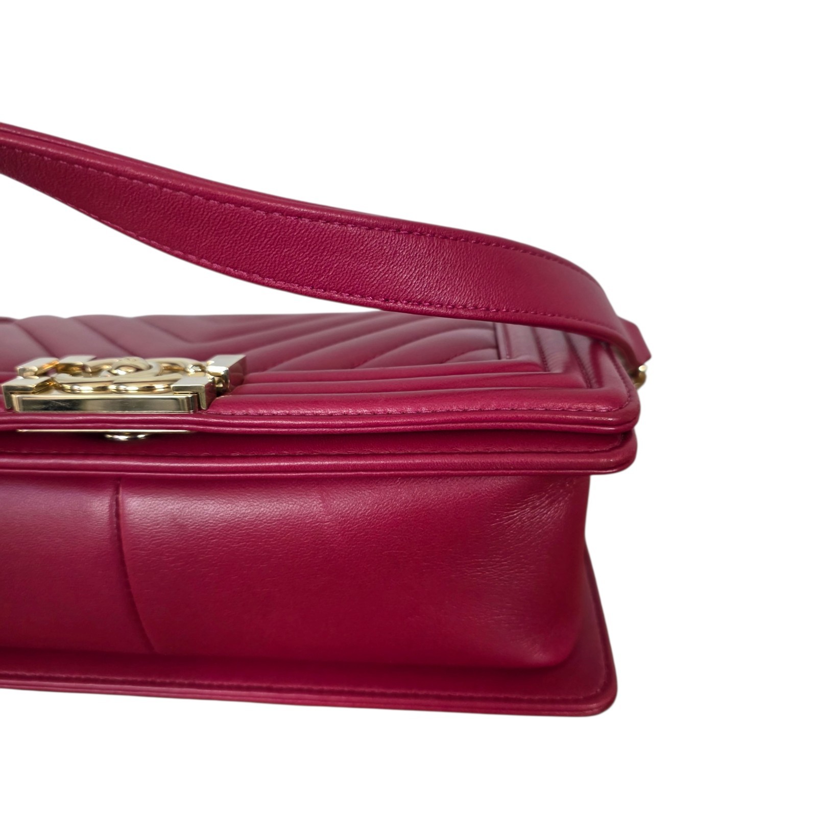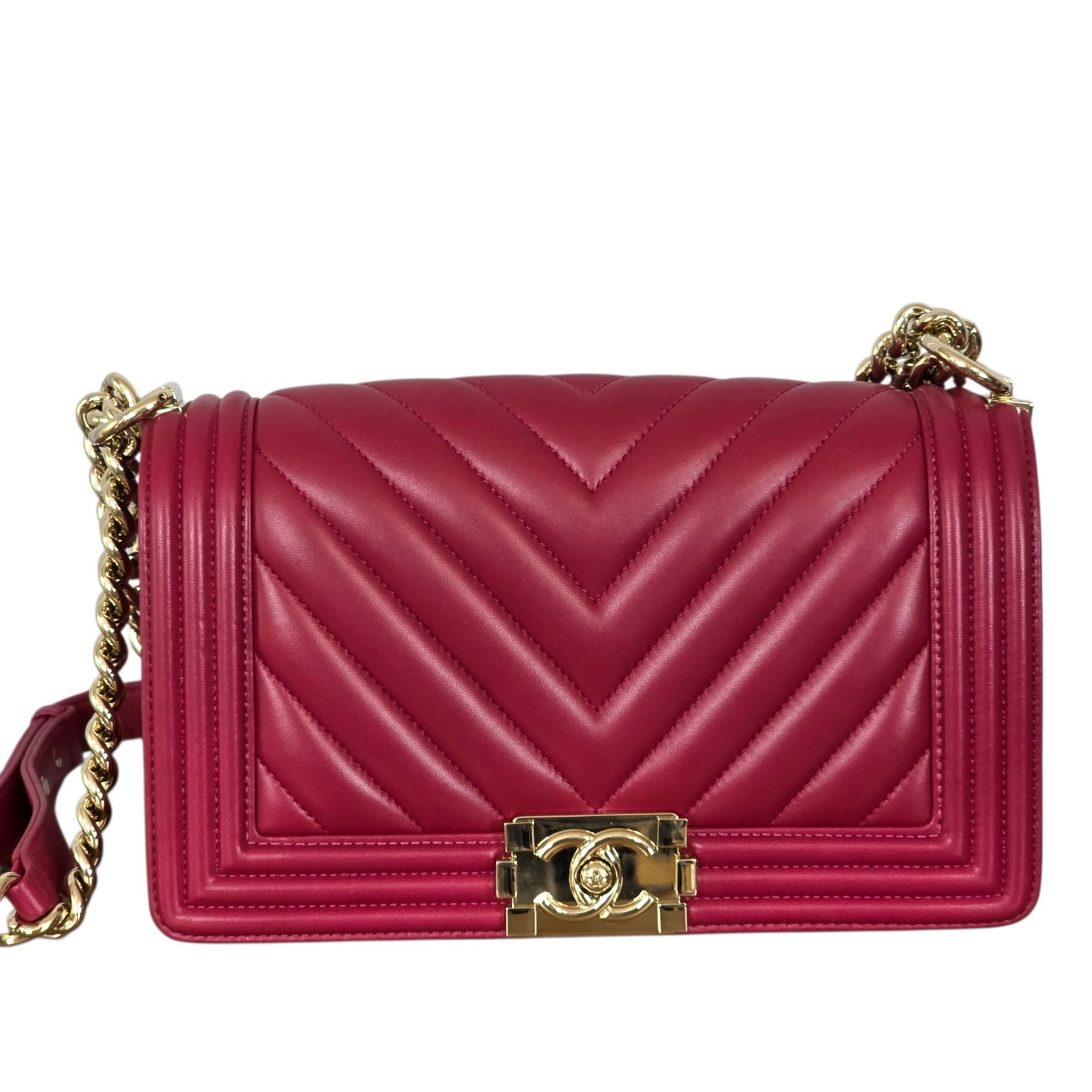 This Merlot Boy Bag is a statement of refined glamour. The deep wine lambskin paired with champagne gold hardware creates a warm, luminous contrast that elevates any look. It’s the kind of bag that transforms an outfit effortlessly: