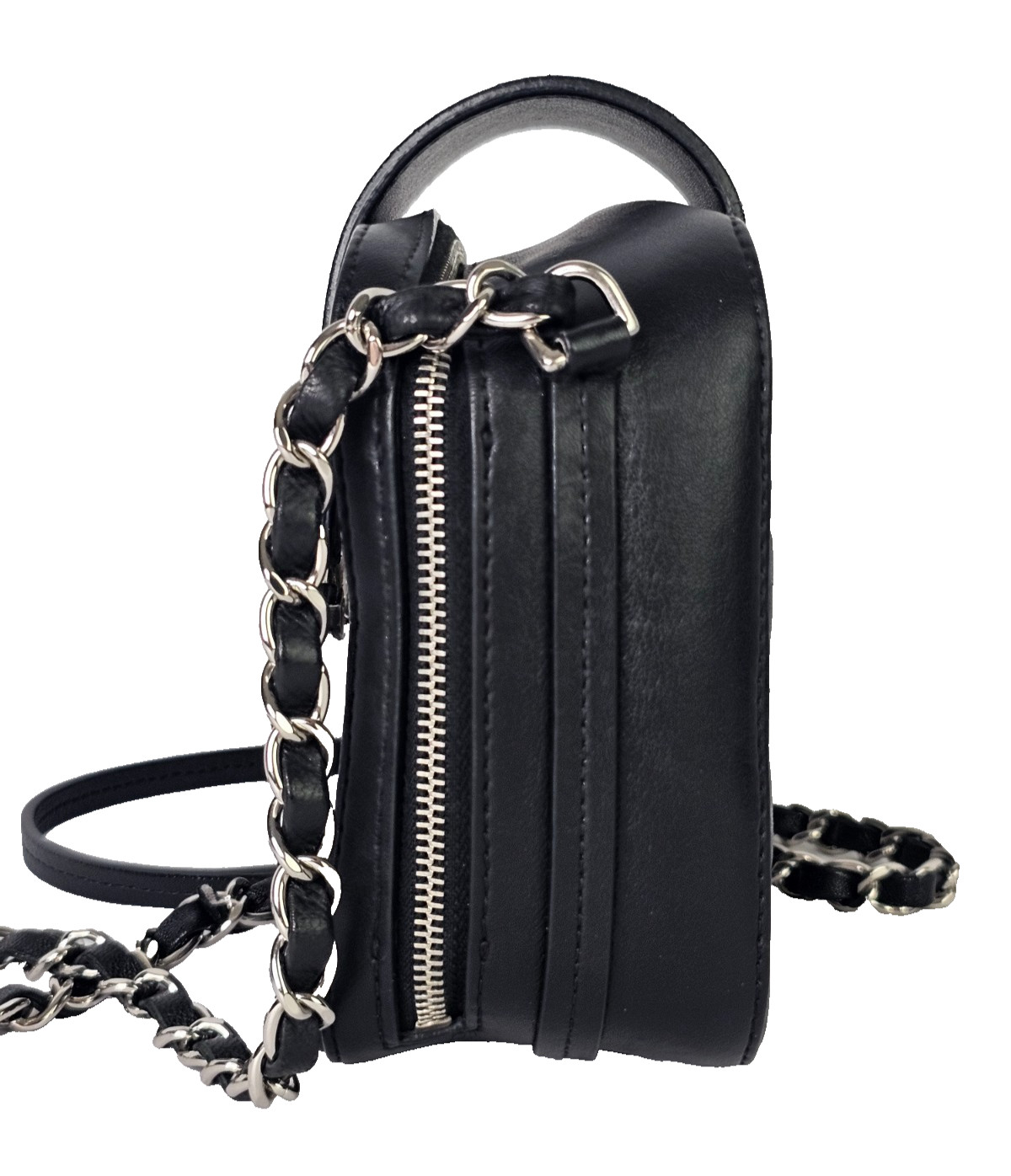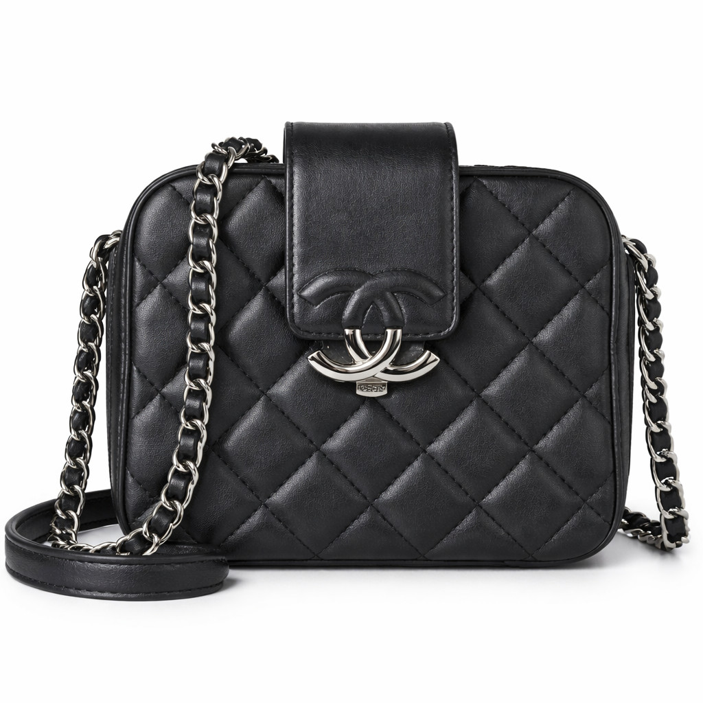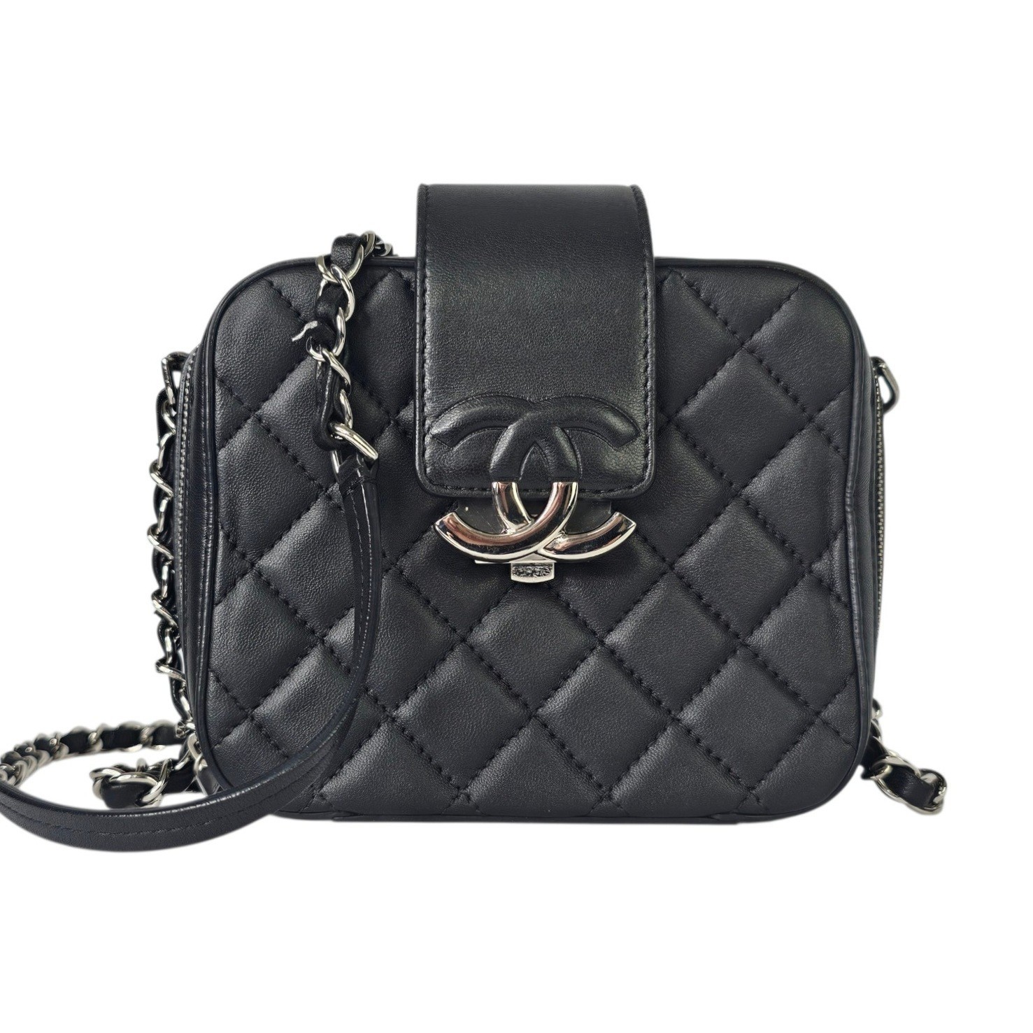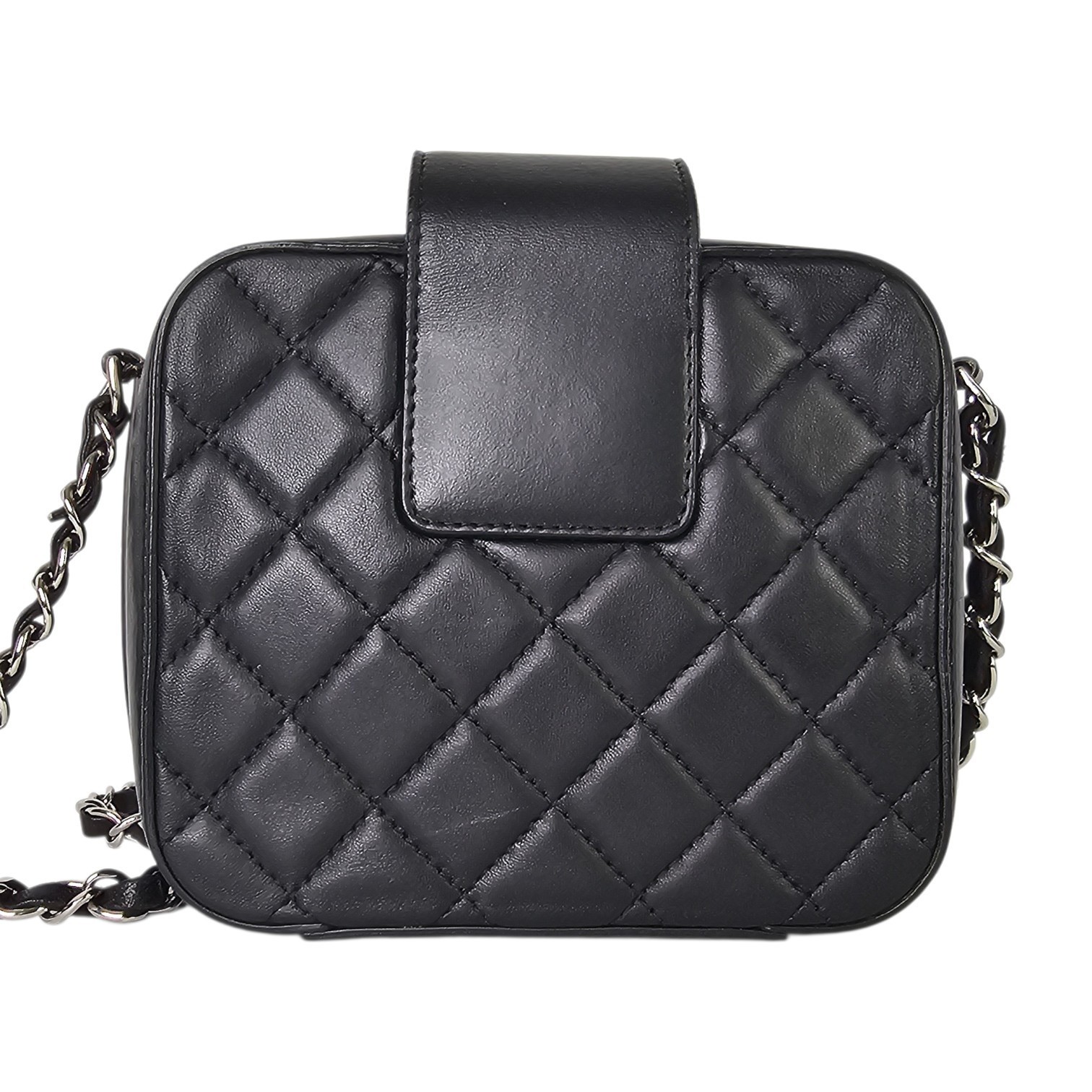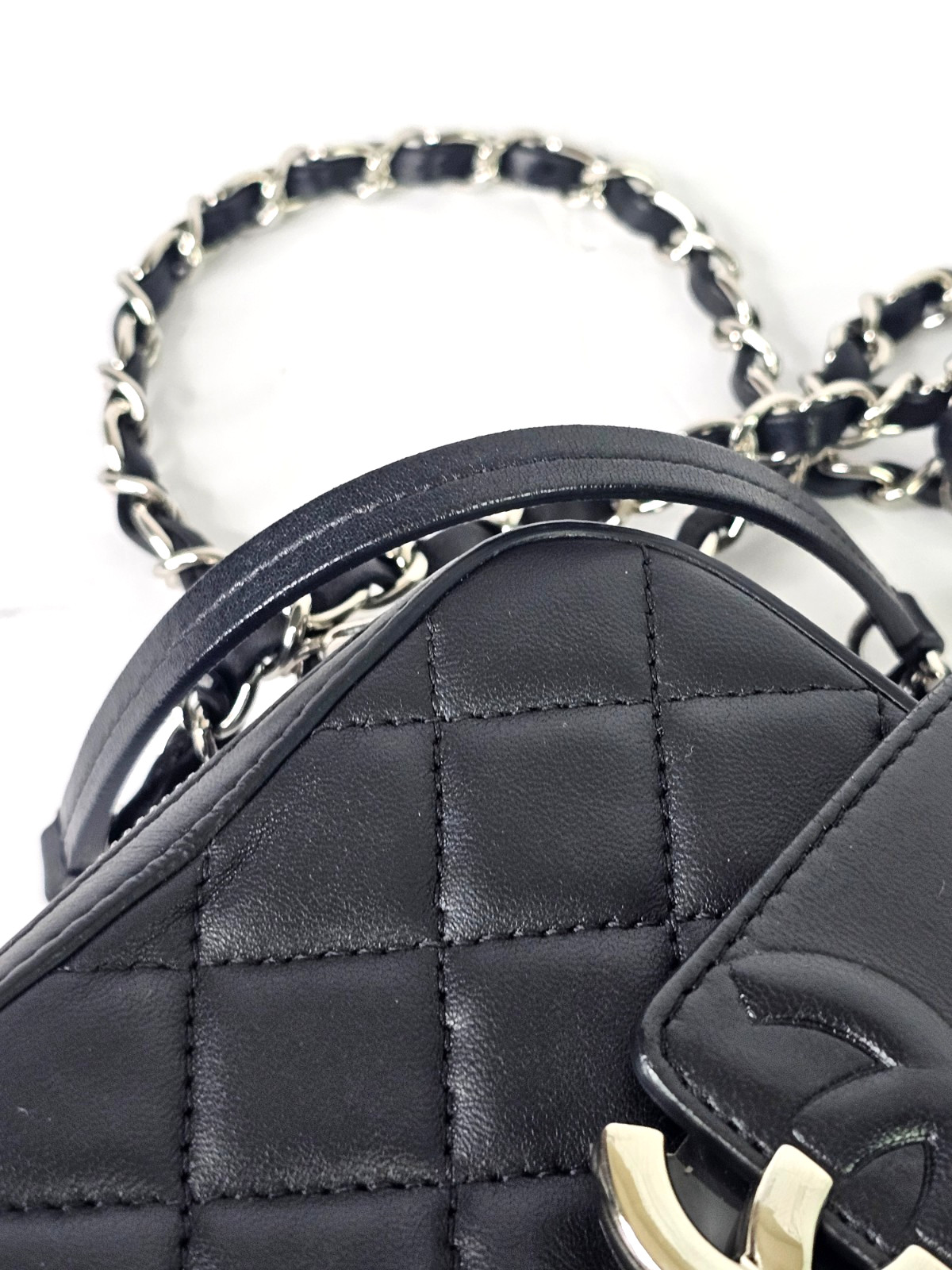CHANEL Lambskin Quilted Mini CC Box Camera Bag Black Silver Chain Strap