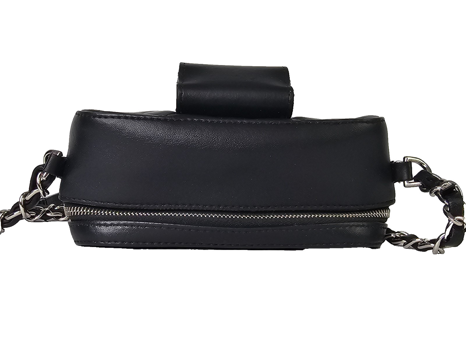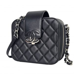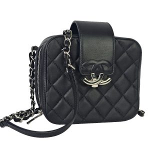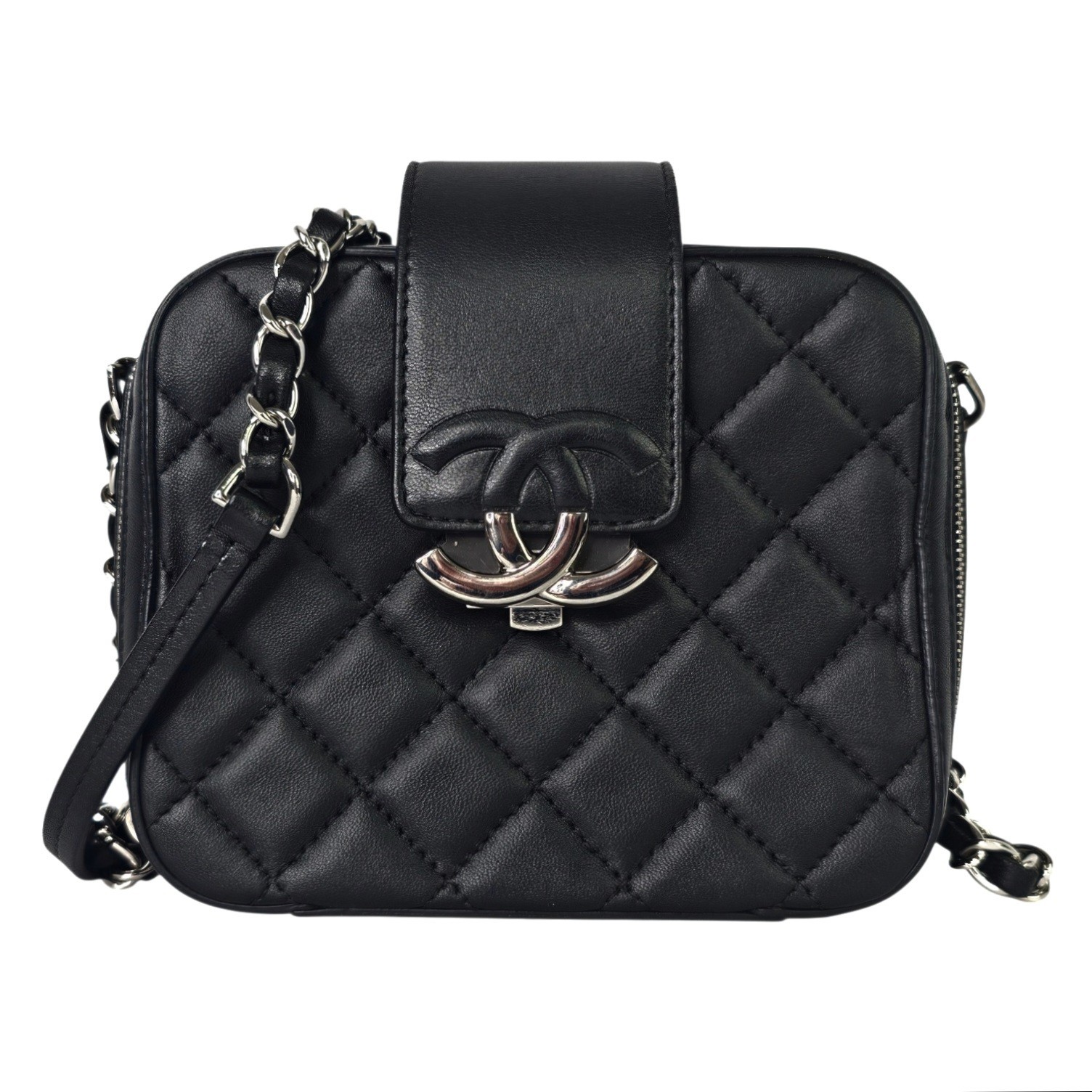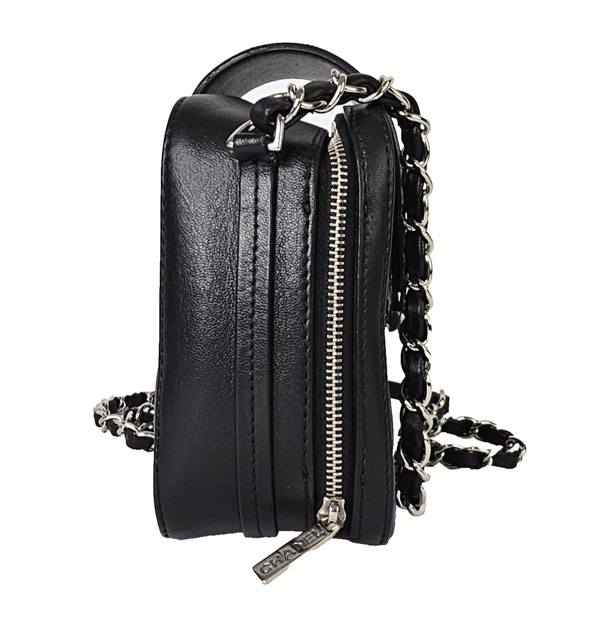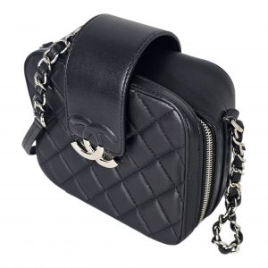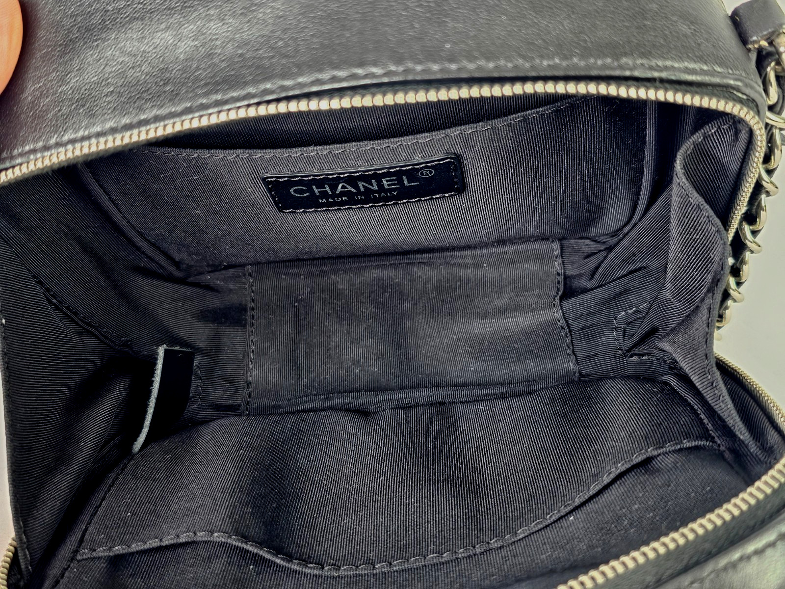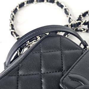 CHANEL Lambskin Quilted Mini CC Box Camera Bag Black Silver Chain Strap