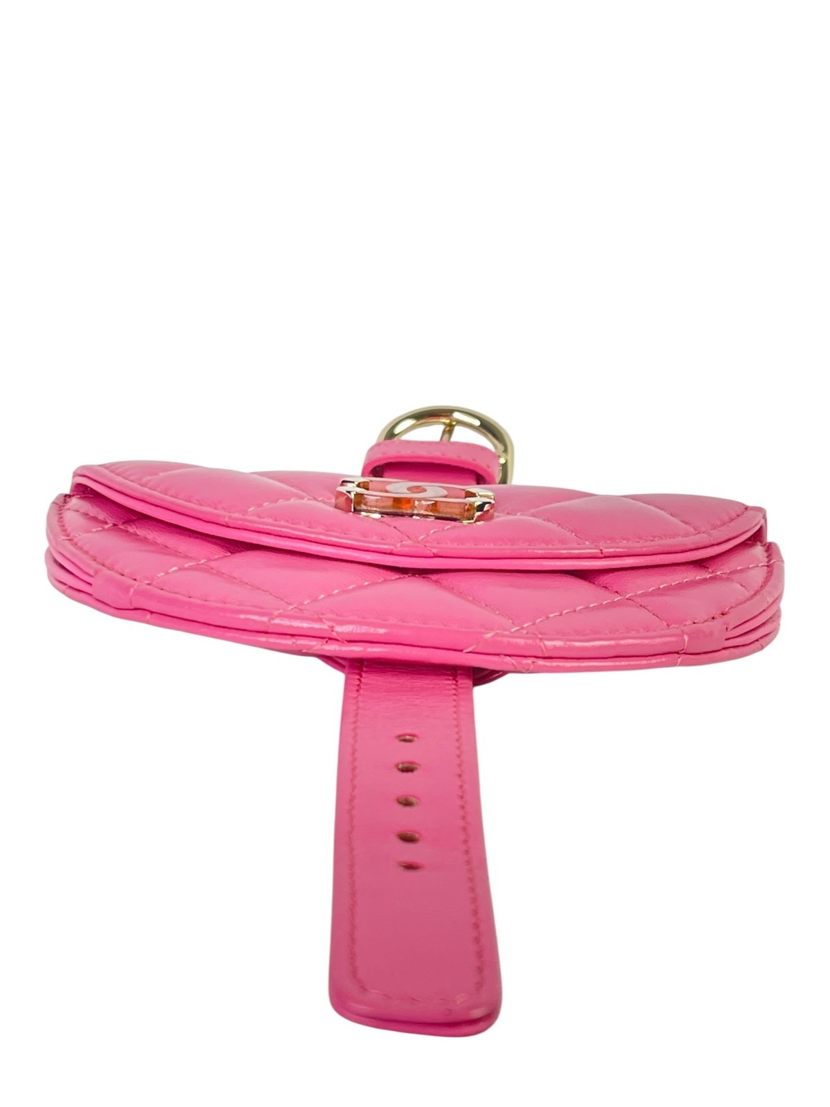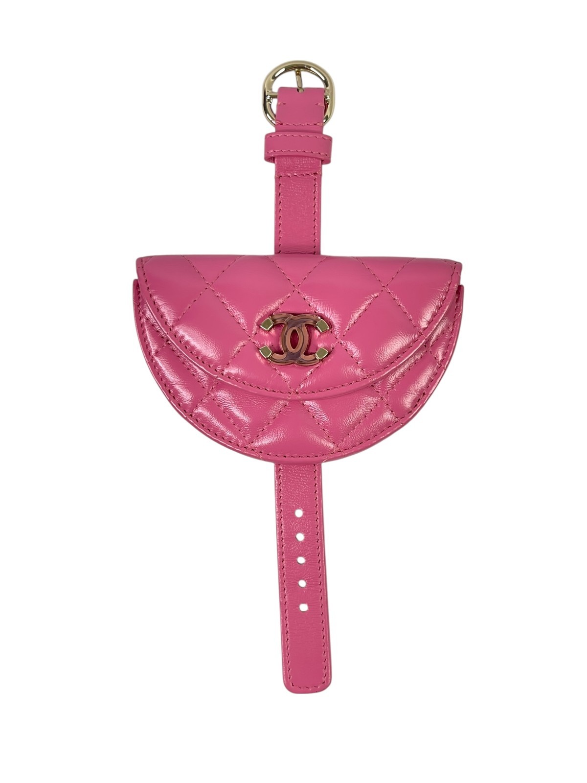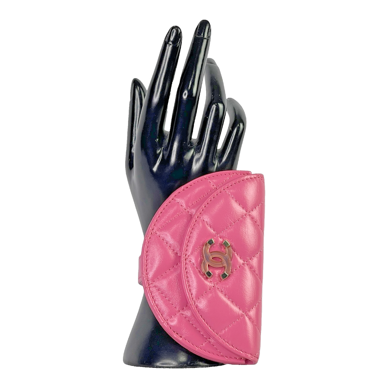 Chanel Shiny Crumpled Lambskin Flap Coin Purse Bracelet Pink
