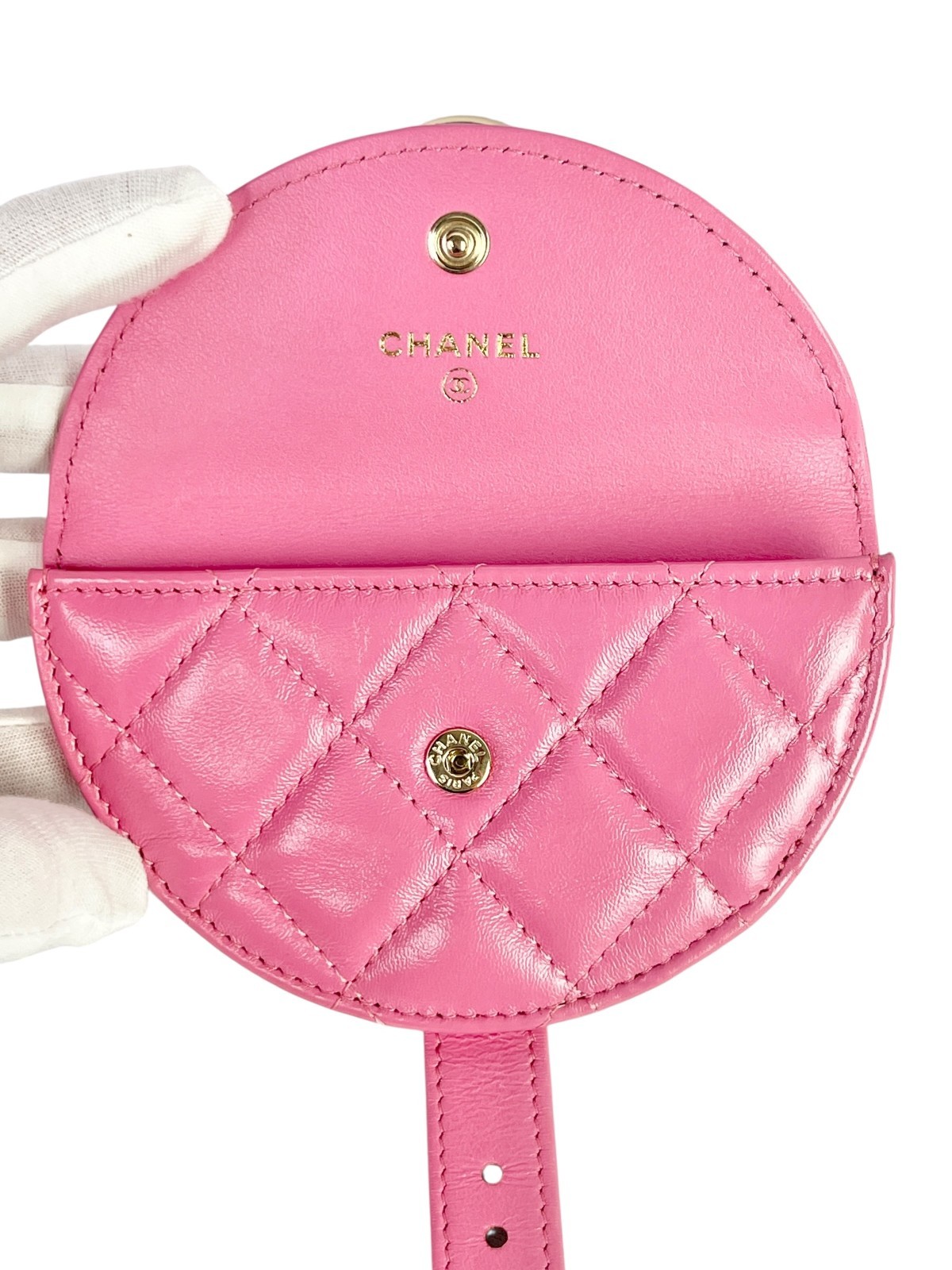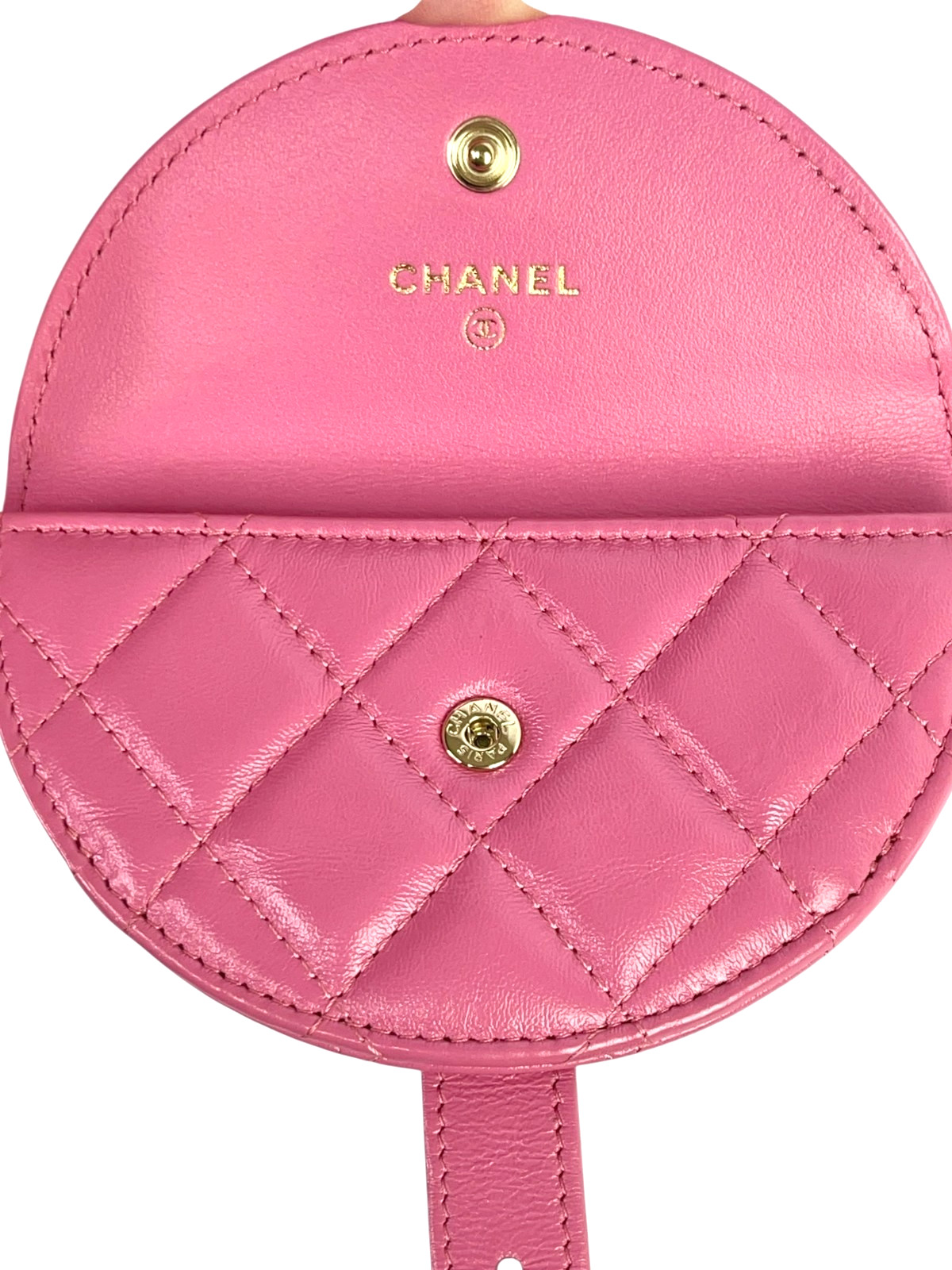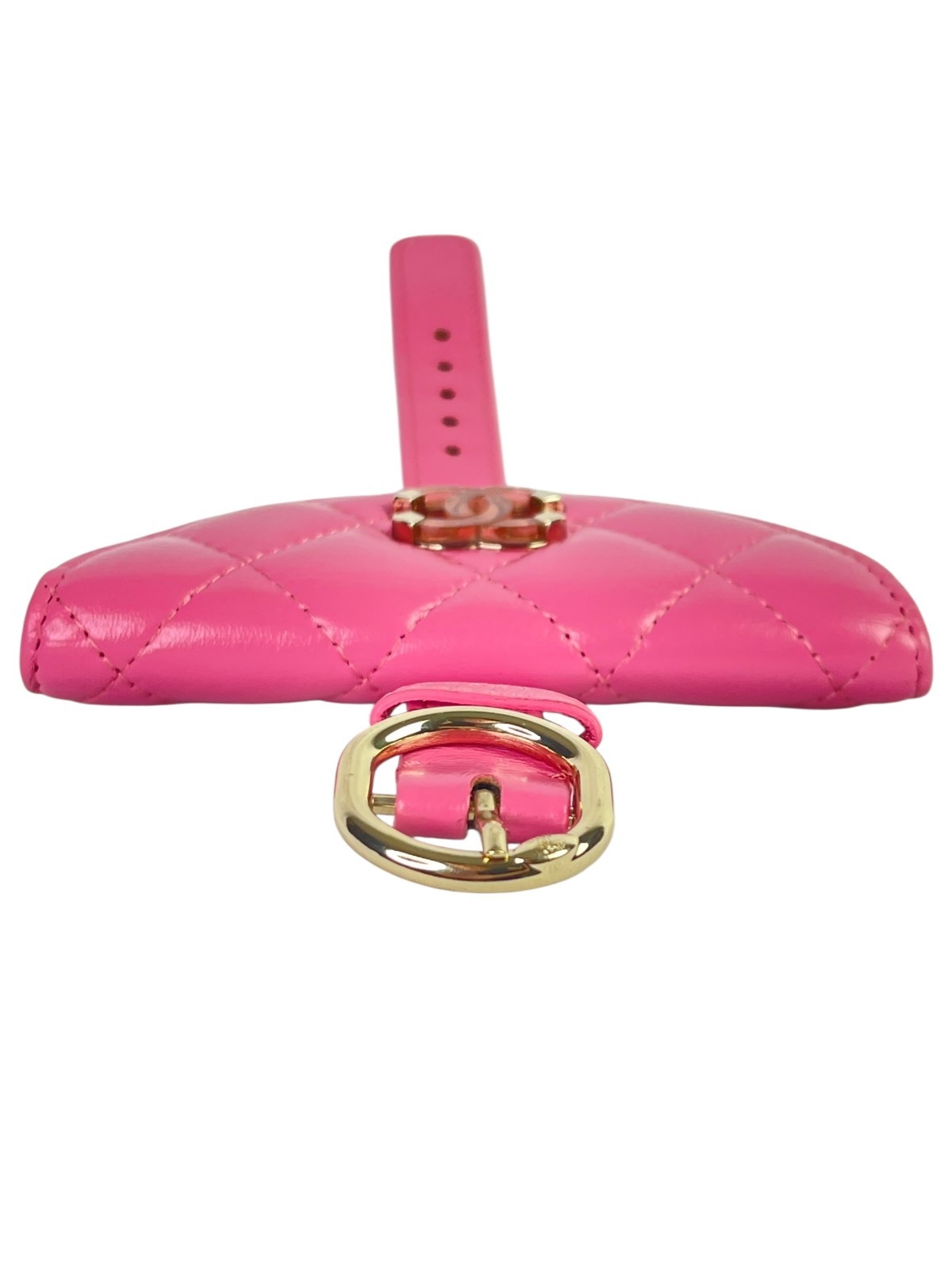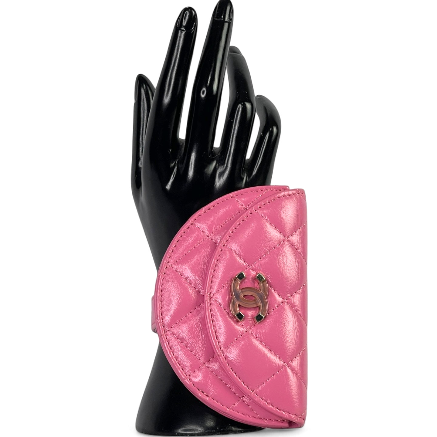 Chanel Shiny Crumpled Lambskin Flap Coin Purse Bracelet Pink