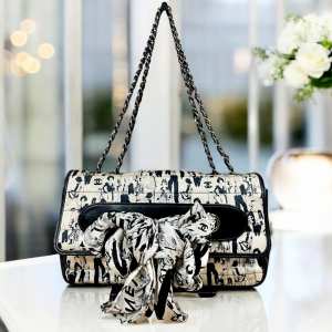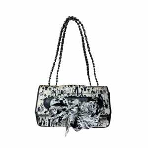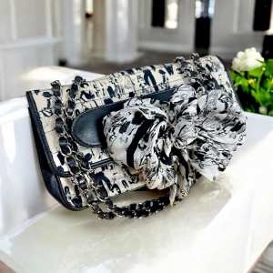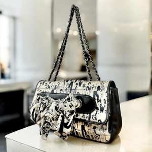 Authentic CHANEL Silk Lambskin Coco Mademoiselle Scarf Flap Bag – White and Black