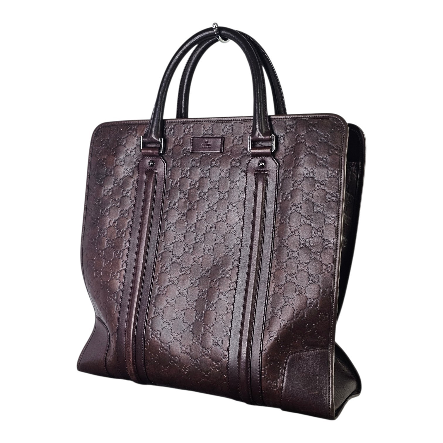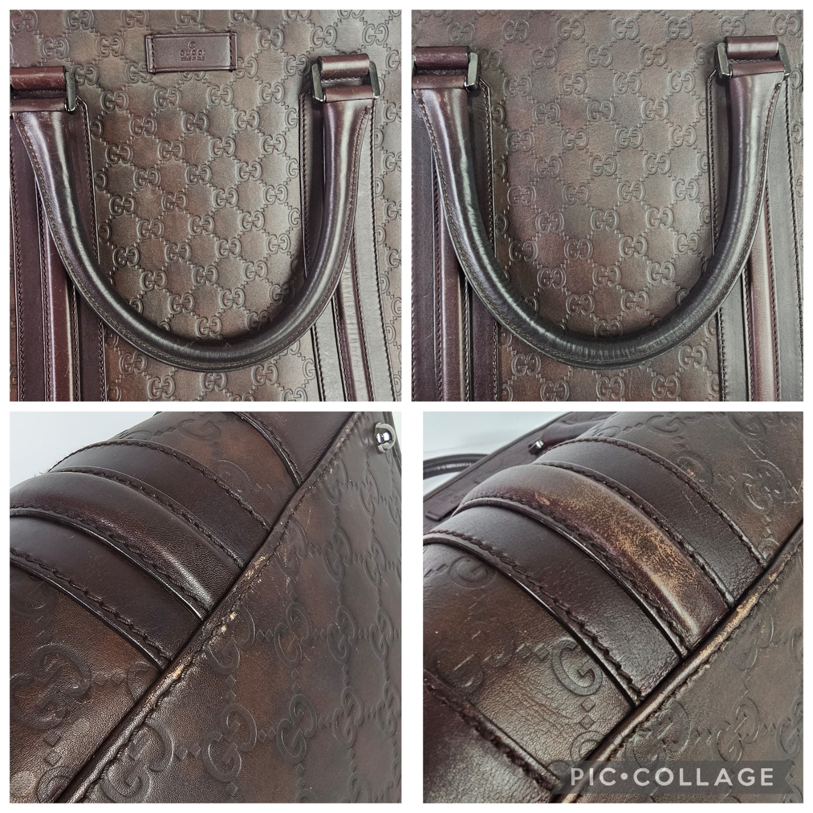 GUCCI Guccissima Brown Embossed Leather Large Travel Tote Work Bag Laptop