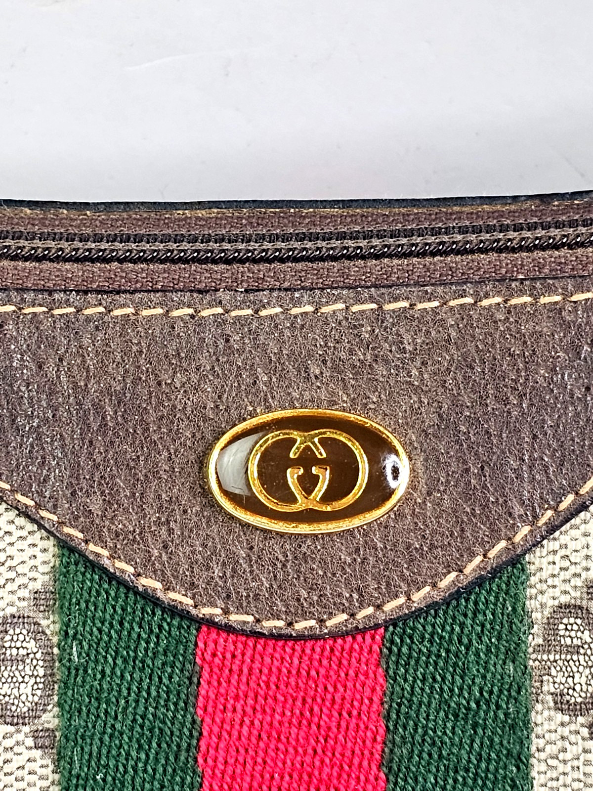 An incredible example of a rare GUCCI made in Italy vintage Ophidia in beautiful condition. Timeless, lightweight, and highly sought after, especially in this original striped version. Pieces like this in this condition are becoming increasingly difficult to find.