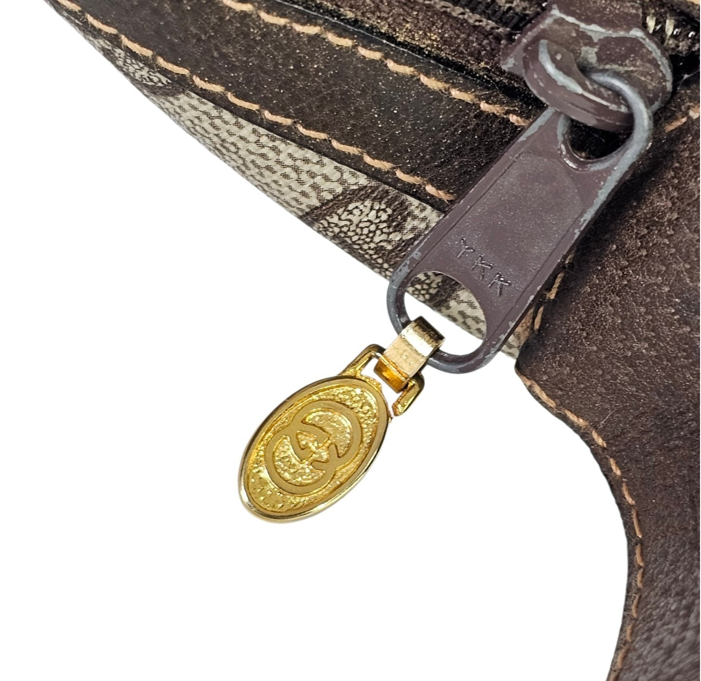 The coated canvas body is lightweight and water resistant in the signature GG monogram print, while the neutral fabric lined interior includes a clean zip pocket. The zipper runs smoothly and is finished with a gold GG charm. The original interior tag is present, with the date code located on the back.
