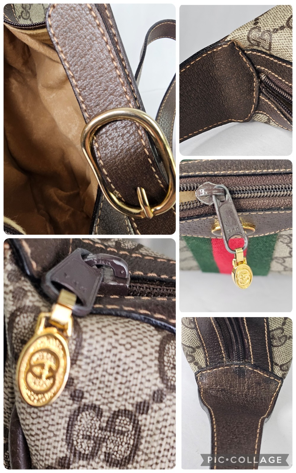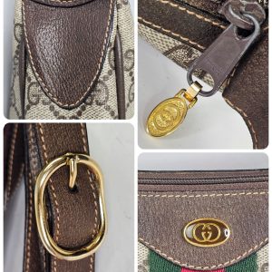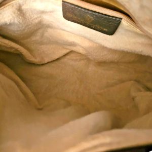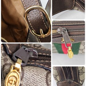 Condition is great overall, so hard to find a vintage bag in this beautiful condition! The exterior canvas body is excellent, and the edge leather trim is also excellent. The leather shoulder strap remains moisturized and supple, not dry, with only slight darker marks on the inner area near where the strap attaches to the bag, not noticeable when worn. The interior fabric is a soft brushed textured fabric no coating just cotton like fabric. Slight furring texture on the fabric lining. The zipper runs smoothly on the closure at the top, with minor wear to the brown finish on the metal visible under close inspection. Interior zipper to the pocket runs smoothly. Interior pocket clean. Lining clean. No odors detected, though for eBay purposes it may carry a faint storage scent. There may be minor signs of use to this bag such as minor scuffs to leather and hardware. Interior may show a hint of wear. Overall we give this bag an 8/10 condition for a vintage Gucci bag. Barely used.