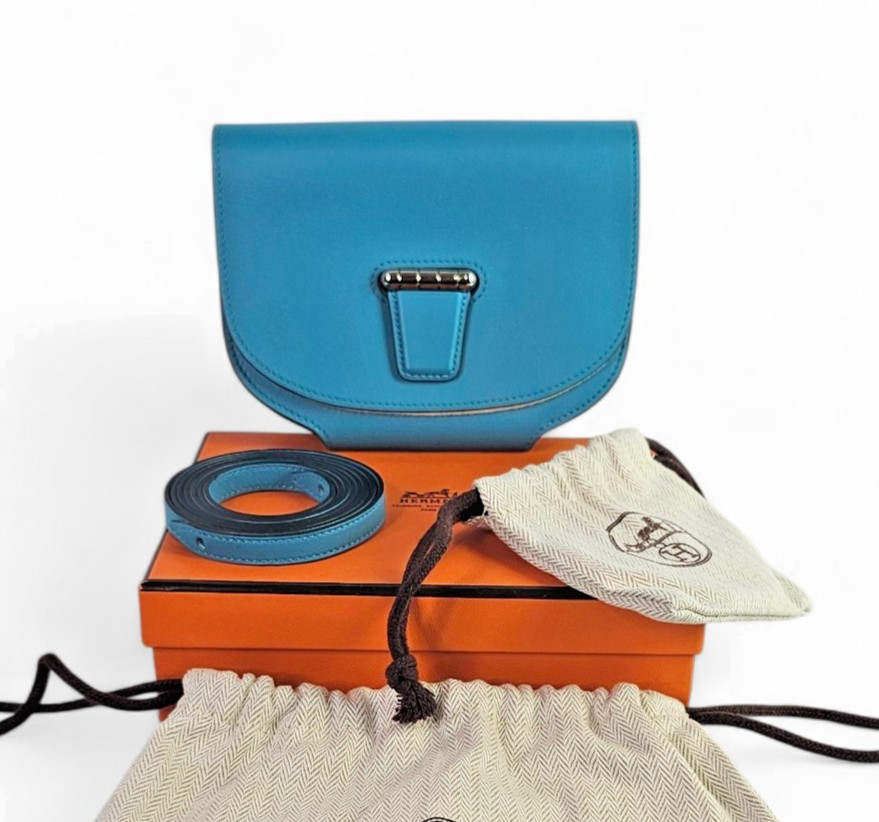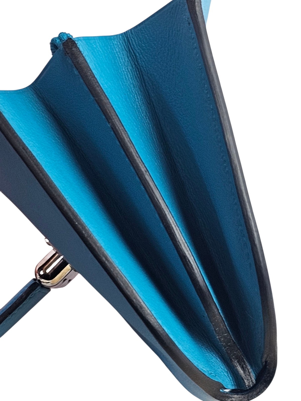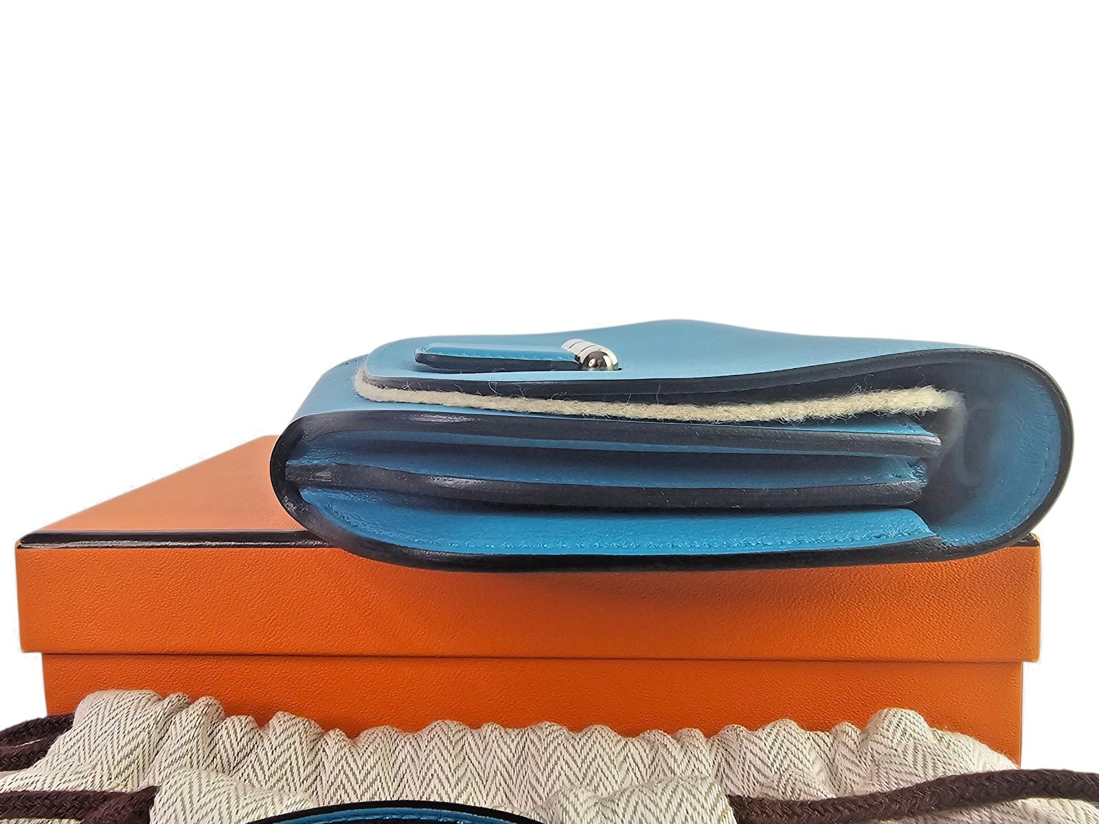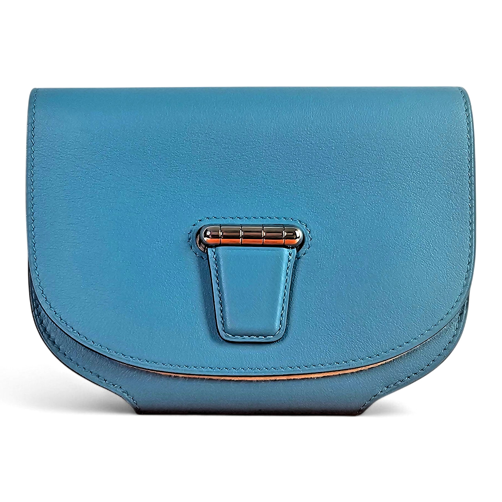 Hermès Swift Mini Convoyeur Turquoise Leather Crossbody Wallet Bag – Complete Full Set