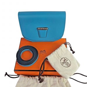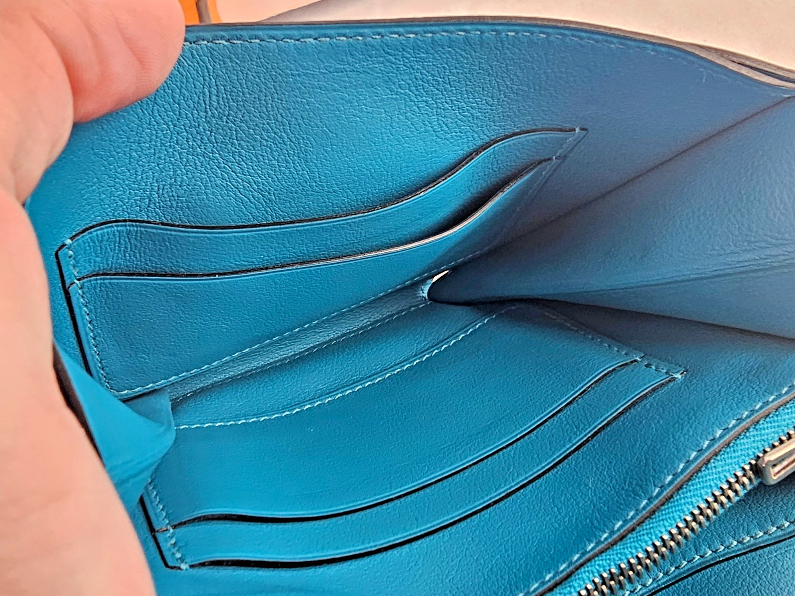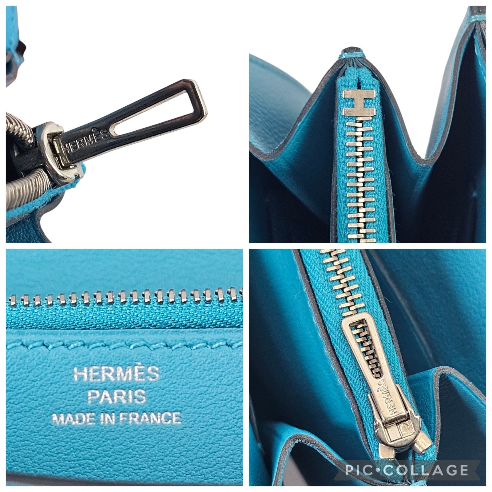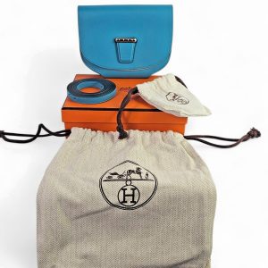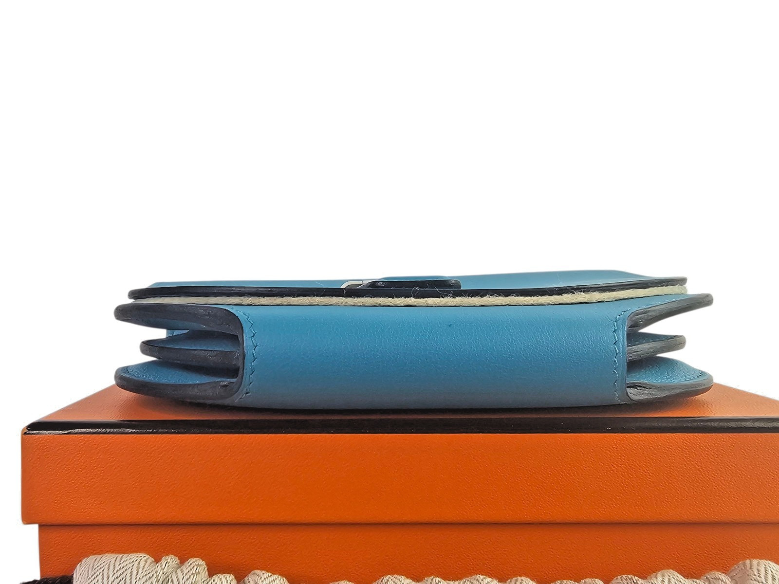 Hermès Swift Mini Convoyeur Turquoise Leather Crossbody Wallet Bag – Complete Full Set