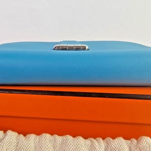 A striking Hermès collectible in a rare turquoise shade, this Mini Convoyeur is both radiant and structured, with a smooth leather finish. The inclusion of the complete set makes it a particularly desirable find for collectors and anyone seeking a versatile luxury piece for everyday wear.