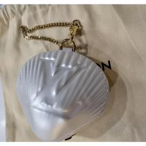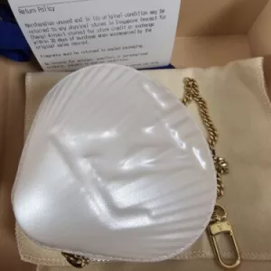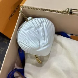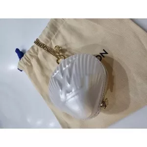 Unique mini size coin purse crafted in leather and comes with a long chain strap.