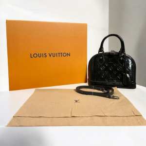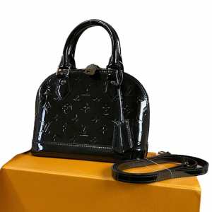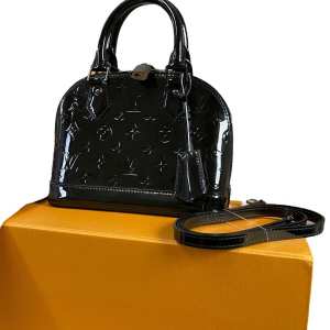 Bring your designer collection to another level with this stunning Louis Vuitton Alma BB, crafted in luxurious black patent leather with the iconic Monogram Vernis finish. A true classic, this elegant bag blends timeless design with modern functionality, making it the perfect accessory for any occasion.
