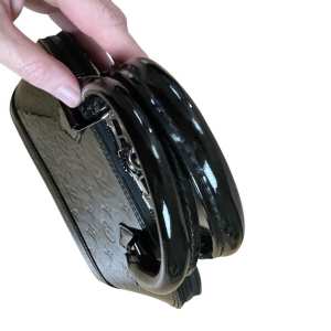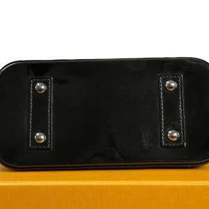 9/10 condition. There is a small scuff that is really only noticeable under certain studio lighting as shown in the photo circled. There is a micro blue sparkle at the base that also cannot be seen easily in the center base of the bag. It was probably part of the original treatment of the bag. There is a micro glitter that was added to the finish and it seems to be a part of it. This Alma BB is in excellent condition with minimal signs of use. Interior has a tiny hint of wear but barely. A tiny bit of wear to the leather patch, very clean. Interior is scent free. Zipper runs smoothly. The patent leather shines beautifully, and the interior is clean and well-maintained. The bag is 100% authentic, and eBay will authenticate it as part of their complimentary service, adding peace of mind to your purchase.