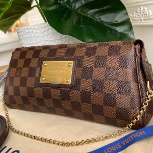LOUIS VUITTON Authentic Eva Clutch Damier Ebene Crossbody Bag MB0184