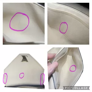 - Light wear showing inside the bag lining such as the flap over closure on the underside edge