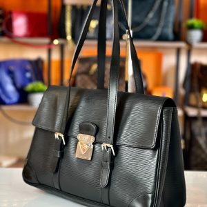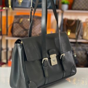 LOUIS VUITTON Black Handbag Epi Satchel Leather Shoulder