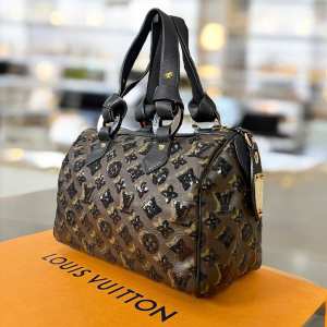 Due to its limited availability, you will likely need to purchase this bag pre-owned, making it even more sought after. This Louis Vuitton Speedy is ideal for both day and evening, offering versatility, sophistication, and a touch of glamour to any outfit.