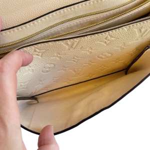 Luxurious pre-owned Louis Vuitton Empreinte Vavin PM in a stunning cream monogram-embossed leather. Perfectly combining timeless design with modern elegance, this bag is a statement piece of sophistication.