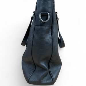The tote is designed for both functionality and style, featuring sturdy leather top handles secured with matte silver-tone links, as well as a removable and adjustable shoulder strap that allows for comfortable crossbody or shoulder wear. The top zipper closure adds security while maintaining easy access to the interior.