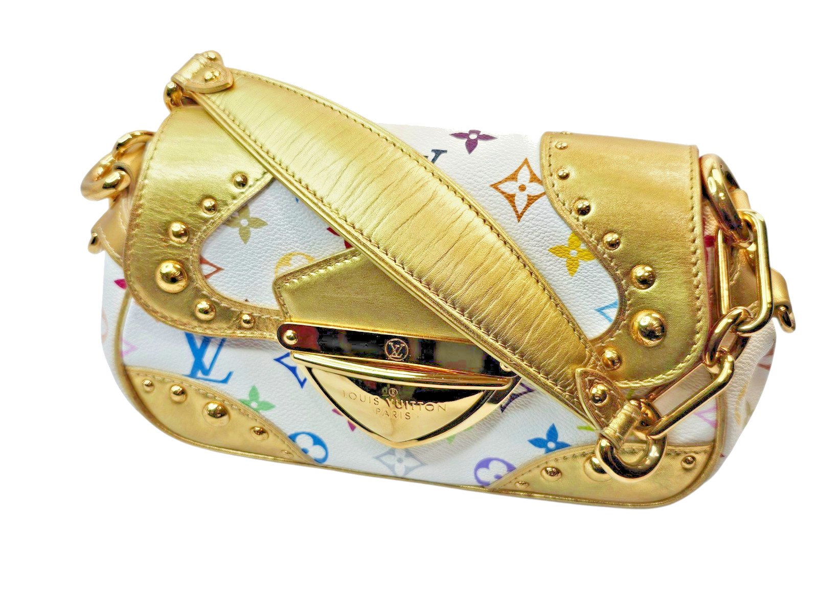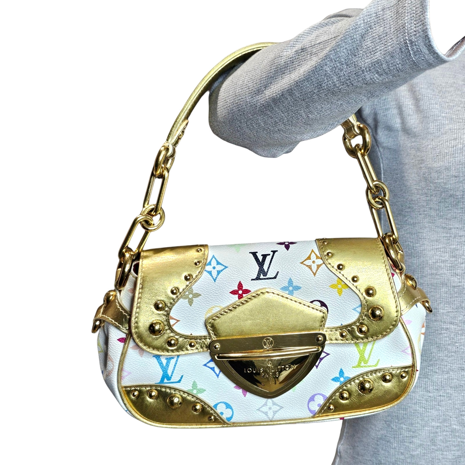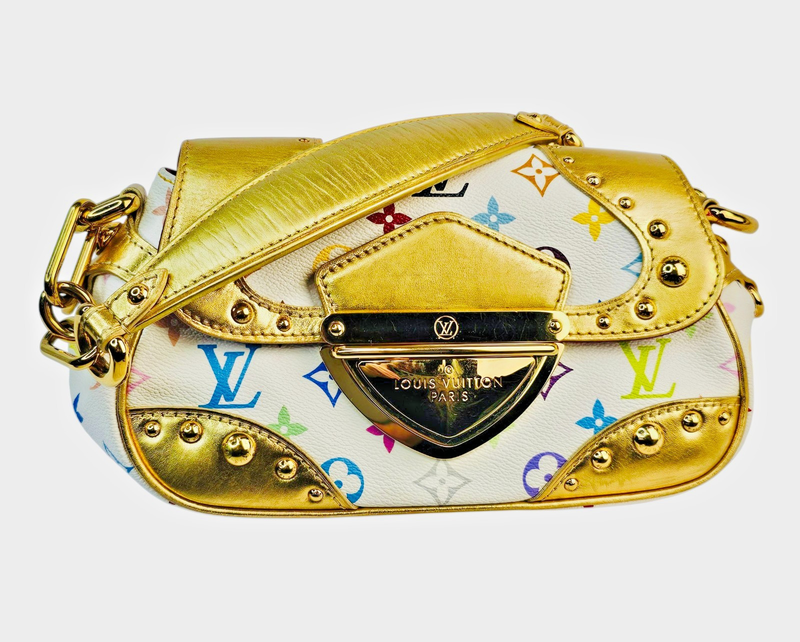 Return To ShopLouis Vuitton Monogram Multicolore Greta Bag in Blanc (white) w Gold metallic leather trim