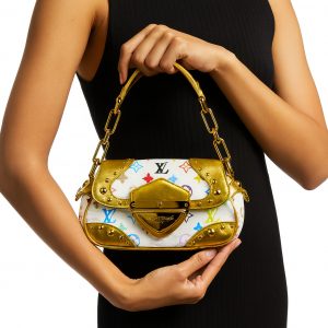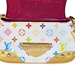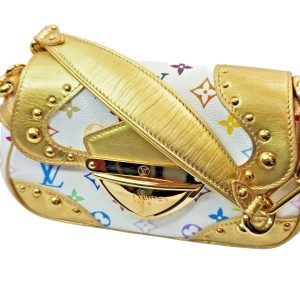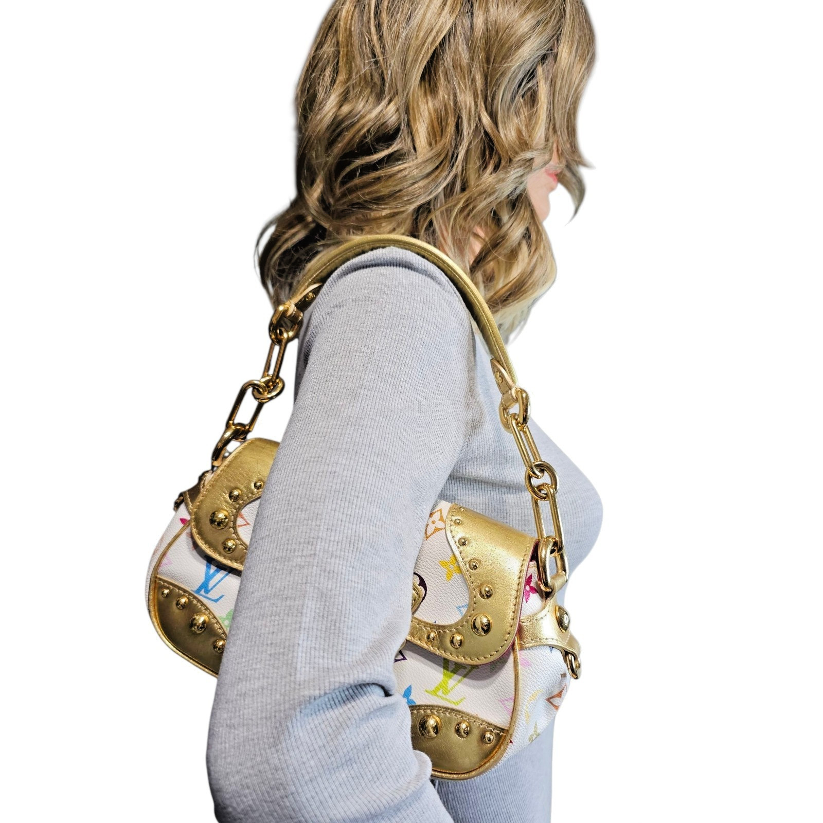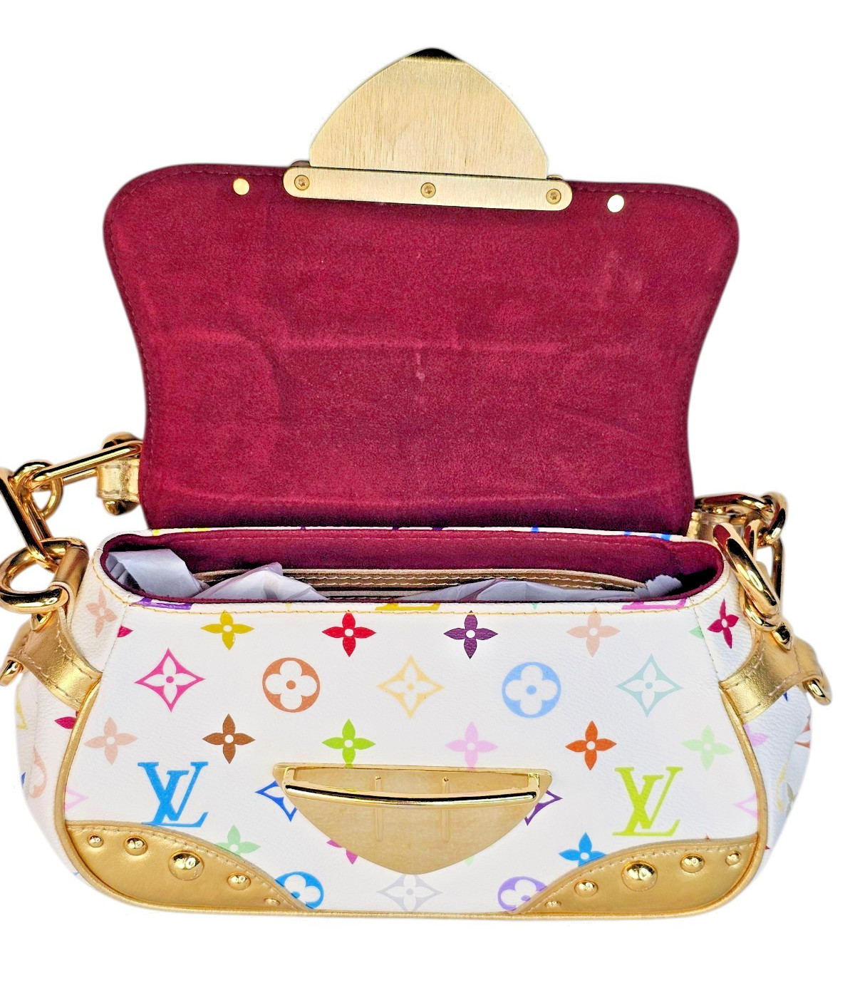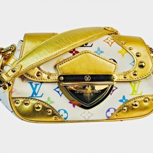 Return To ShopLouis Vuitton Monogram Multicolore Greta Bag in Blanc (white) w Gold metallic leather trim