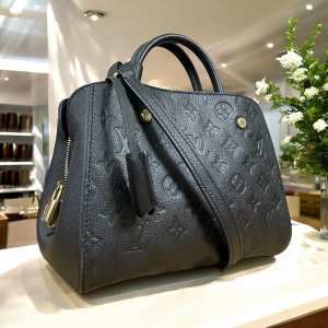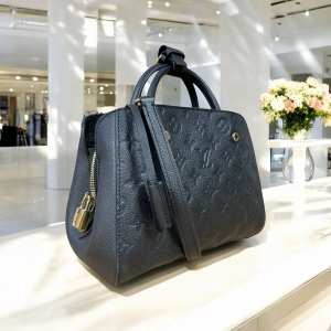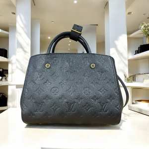 Louis Vuitton Montaigne BB in black Monogram Empreinte leather is a sophisticated and versatile handbag that blends elegance with practicality. Crafted from supple, embossed Monogram Empreinte leather, this structured yet compact bag is perfect for both day and evening wear.