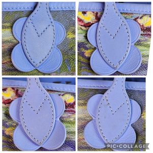 • Good condition with wear consistent with use. Leather handles show wear with minor surface micro cracking along the edge trim. Canvas body remains clean with scuffing visible at the corner edges. Top leather trim shows wear and scuffs. Interior shows wear, scuffs, and marks. Interior pouch leather has wear, scuffs, and marks. Hardware has light surface scuffs. One area where the leather attaches to the bag has loose stitching. Structurally sound overall. No scents detected, though a minor storage scent may be present. Please view all photos.
