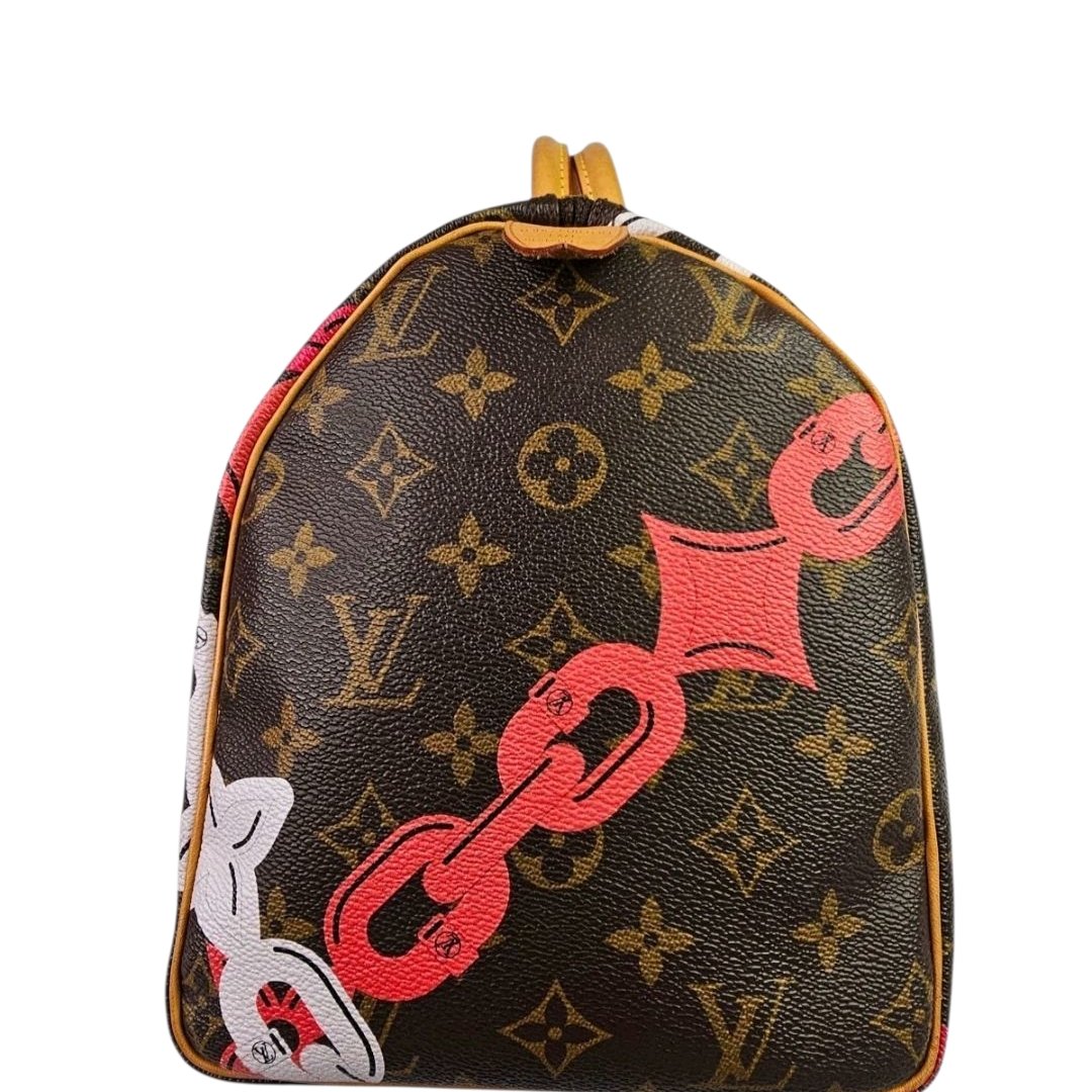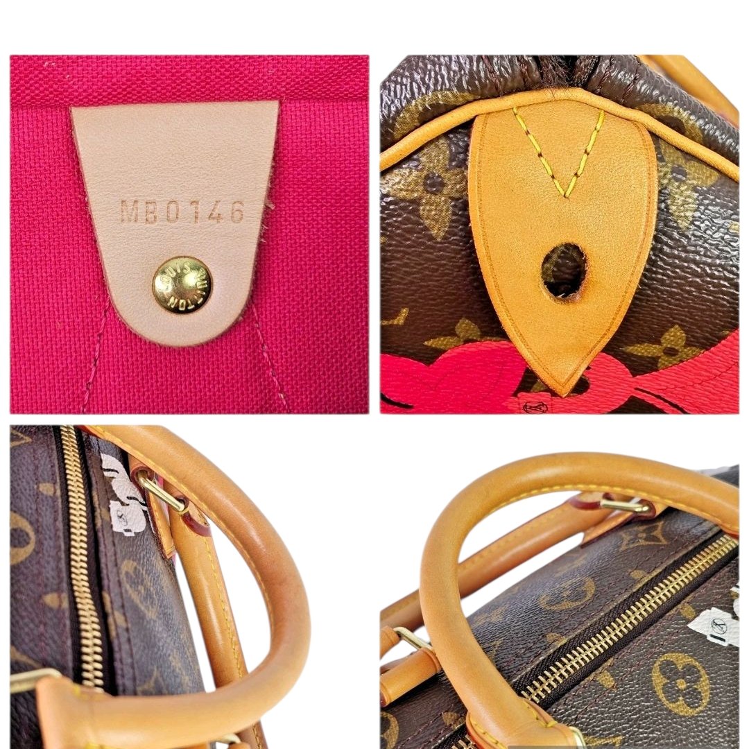 Whether styled for daily sophistication or reserved as a statement piece, this Speedy 30 stands out for its rare colorway and playful floral detailing. A true gem for collectors and connoisseurs alike.