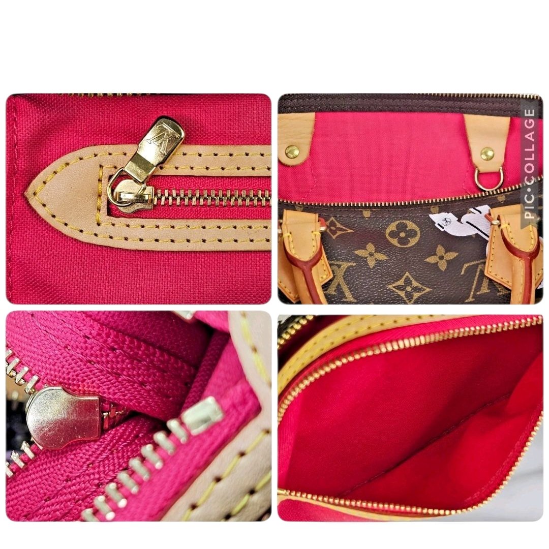 Description This authentic Louis Vuitton Monogram Bay Speedy 30 in Rose Ballerine and Poppy is a coveted collector’s piece and a timeless addition to any luxury wardrobe. Crafted from Louis Vuitton’s iconic monogram coated canvas, this limited edition design showcases a delicate chain-flower motif that merges heritage elegance with a bold, contemporary twist.