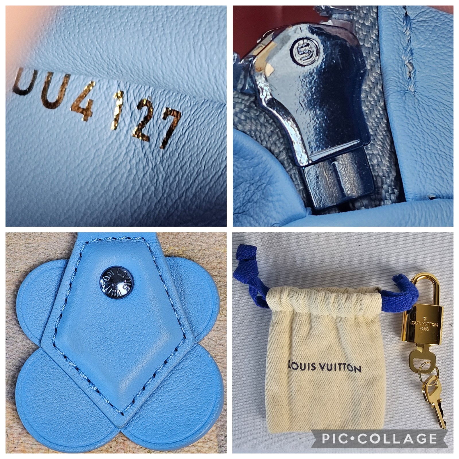 Includes: dust bag (may show signs of wear), lock, keys, pouch for lock/keys and charm embellishment.