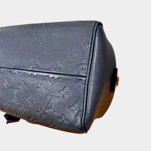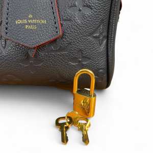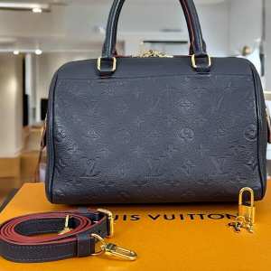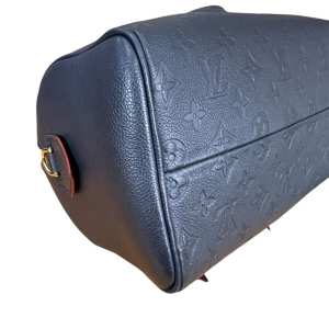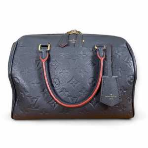 The Louis Vuitton Speedy Bandoulière 25 in Marine Rouge is a sophisticated take on the iconic Speedy silhouette. Crafted from supple Monogram Empreinte leather, this compact bag features a rich navy hue with striking red accents. Designed for versatility, it’s perfect for daily use or city adventures, with dual Toron handles and an adjustable, detachable shoulder strap for multiple styling options.