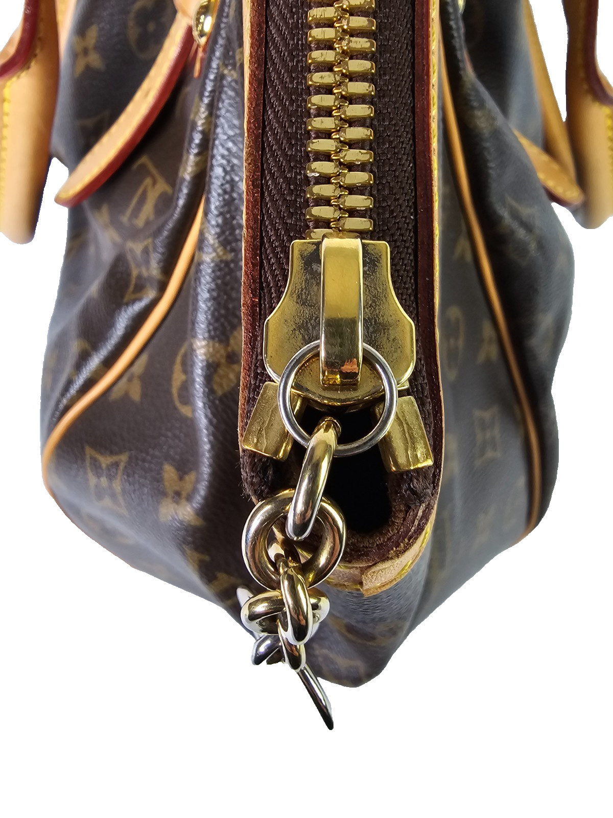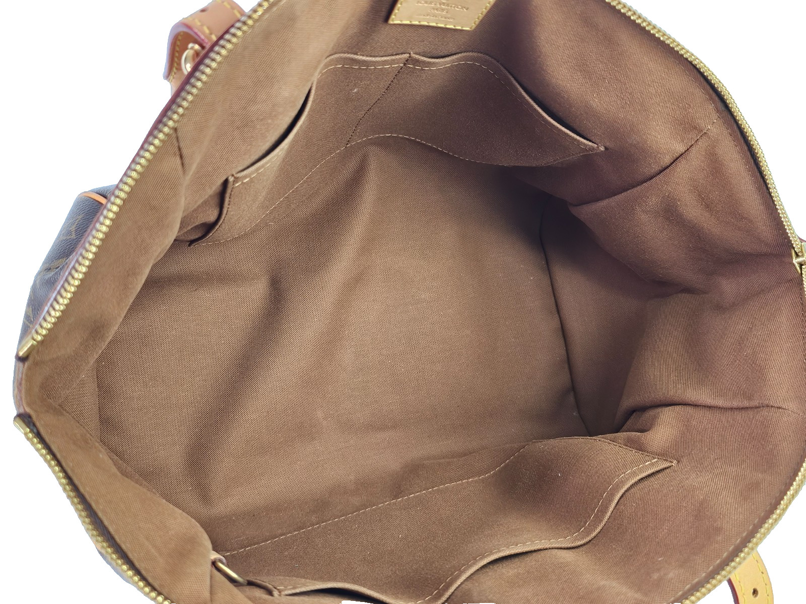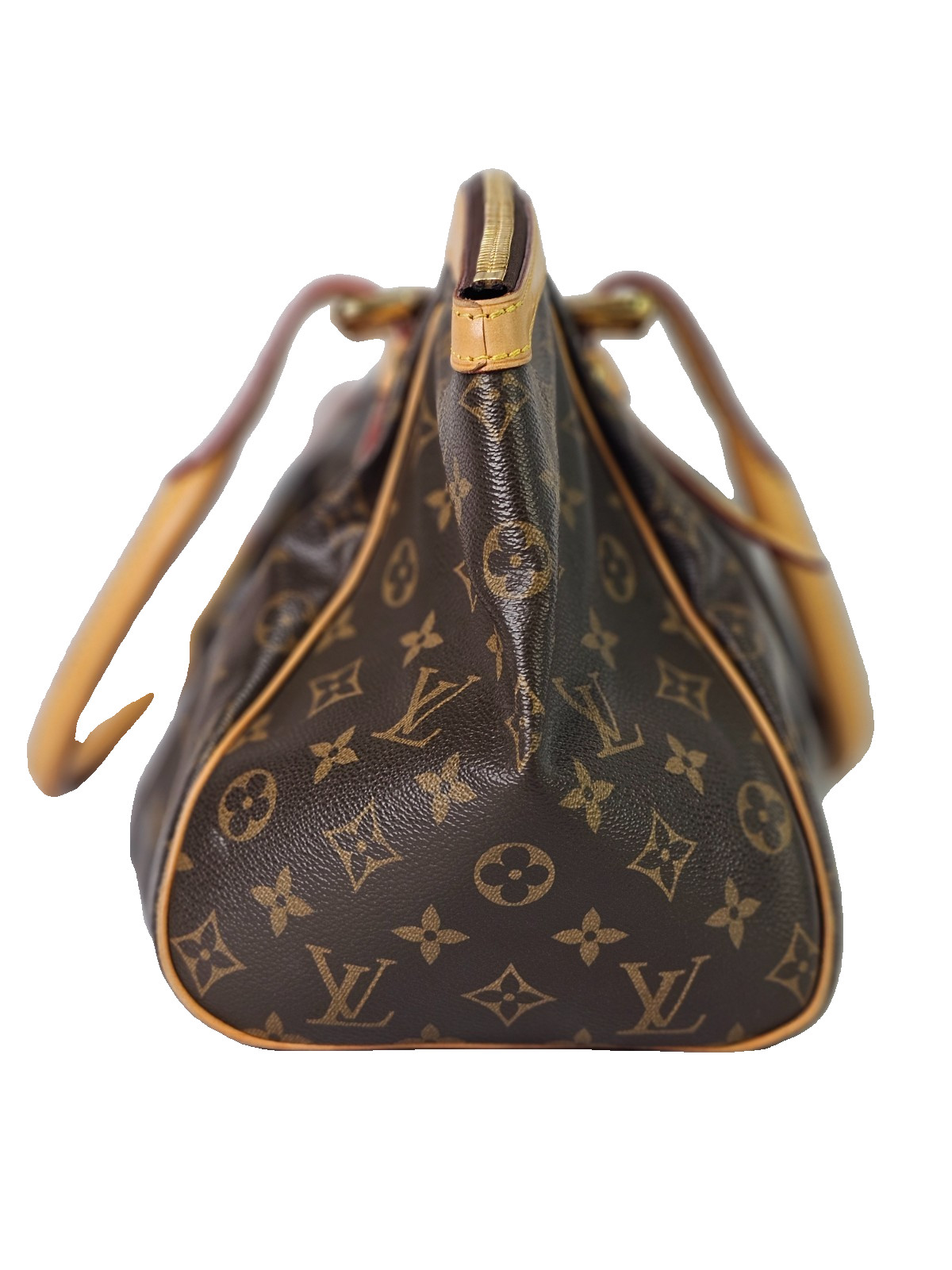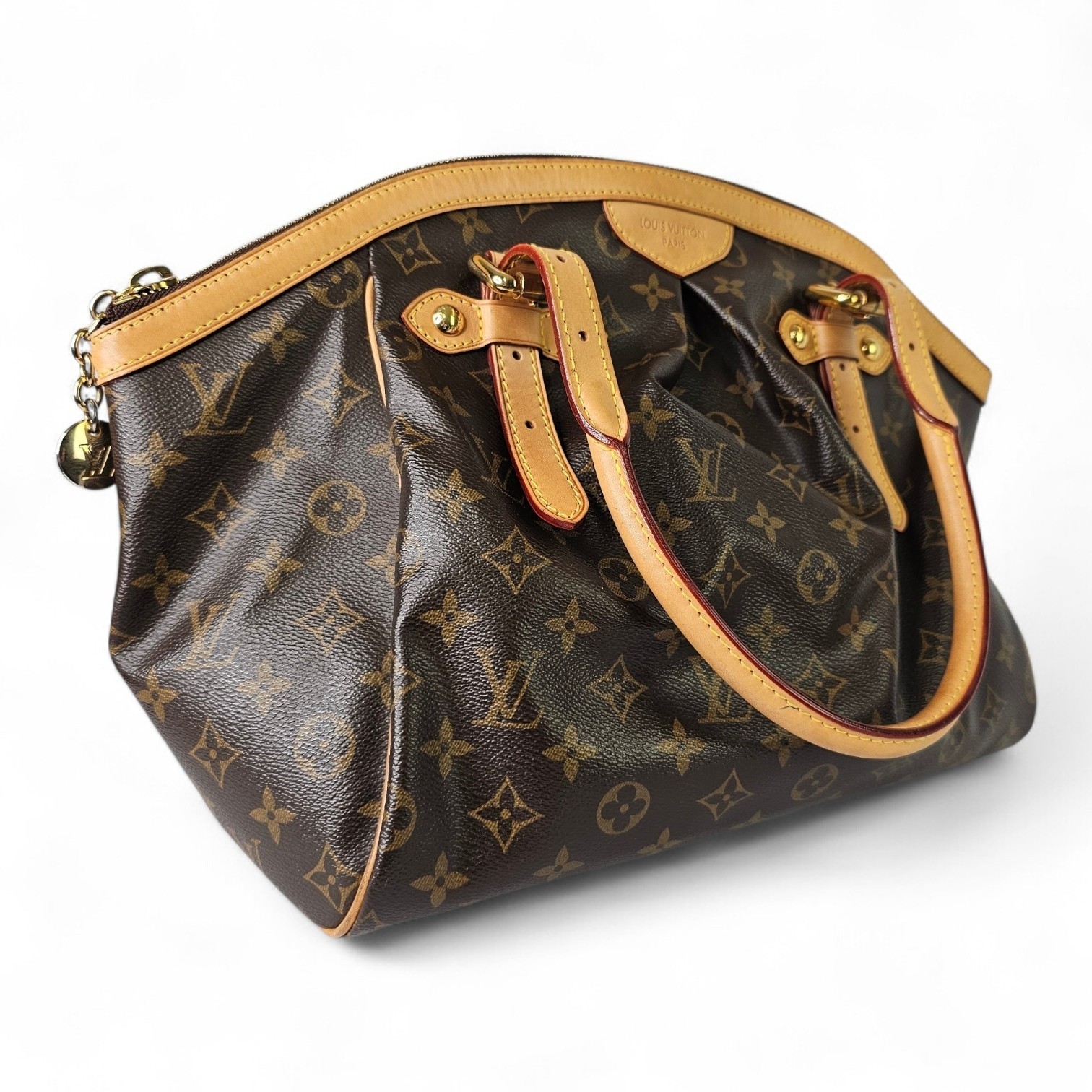 Return To ShopThe Louis Vuitton Tivoli GM is a sought‑after, discontinued style known for its elegant pleated monogram canvas, generous capacity, and refined vachetta leather detailing. This large tote is crafted from monogram coated canvas with natural leather trim, adjustable rolled leather handles, and polished brass hardware. The top zipper opens to a spacious cocoa brown textile interior with patch pockets for easy organization.