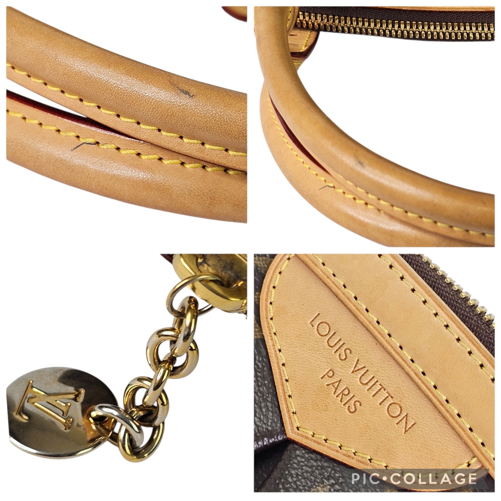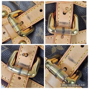 This bag presents in great, clean condition. The canvas is strong and vibrant, and the structure holds beautifully. The vachetta leather shows light, normal wear including small scuffs and some marks beneath the buckle areas from where the hardware rests. These marks are not visible when the bag is filled and carried; they only show when the buckles fall downward. The handles have an even honey patina and sit firmly. Body is strong and has a clear monogram pattern. Hardware remains bright with typical surface wear. The interior is clean with minor signs of use. No odors detected; for eBay accuracy, it may have a slight storage scent. Some scuffs and tarnishing to hardware. There are a couple ink marks on the handle as shown. Overall, the bag is very clean and well‑kept.