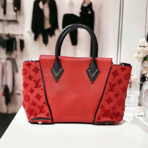 LOUIS VUITTON W BB Veau Red Black Leather Tote Satchel