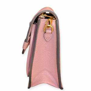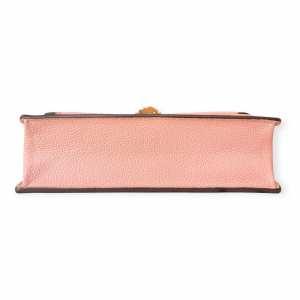 The bag features a brass bijoux chain strap, offering effortless shoulder wear, while the structured flap closure is secured by a polished brass magnetic clasp with an S-lock design, adding a refined and secure finish. Inside, the plush pink microfiber lining provides a well-organized space, complete with a zippered compartment, a front pocket, and a card slot panel for added convenience.